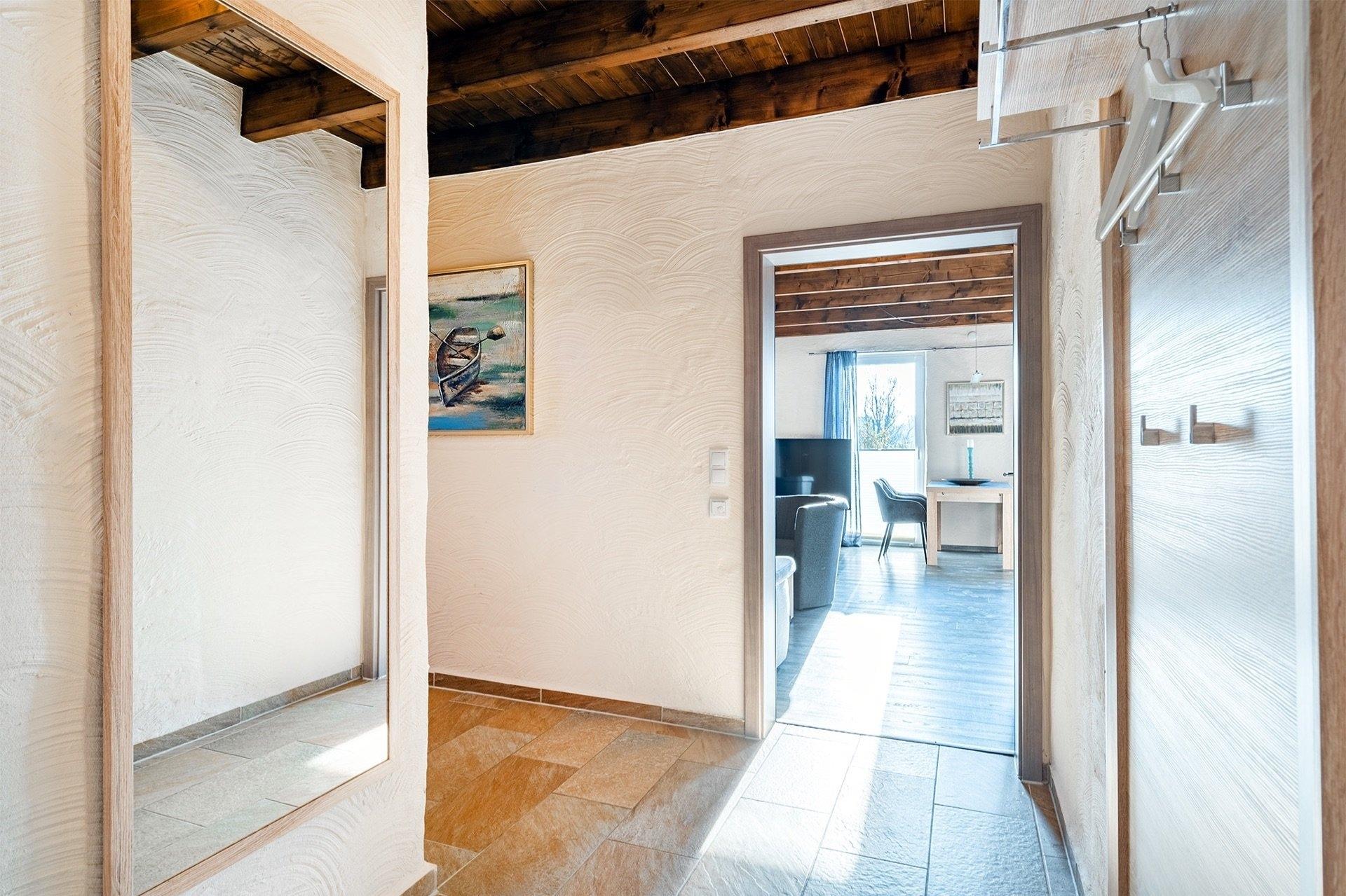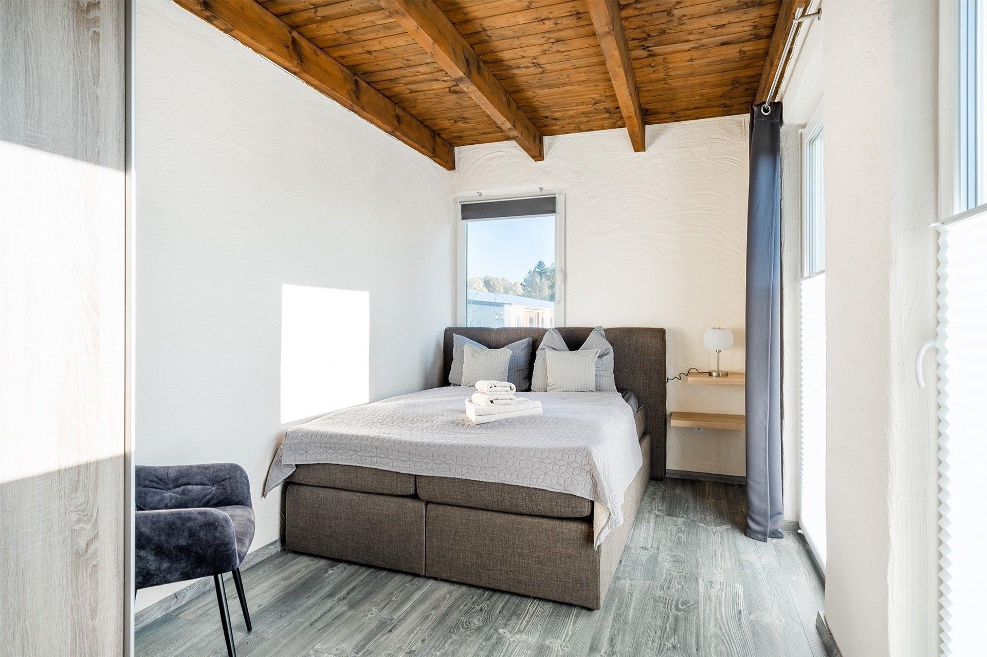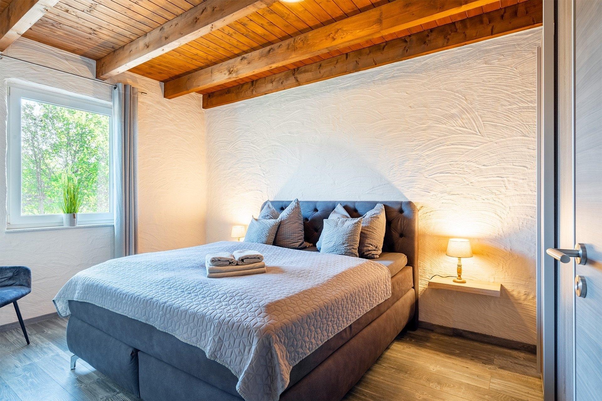 Die Ferienwohnung "Silbersee" bietet eine großzügige und komfortable Unterkunft für einen unvergesslichen Aufenthalt für Familien. Mit zwei Schlafzimmern, die insgesamt vier Schlafplätze bieten, und einem offenen Wohnzimmer/Essbereich mit einer voll ausgestatteten Küche, erwartet die Gäste hier eine behagliche Atmosphäre.Der offene Wohnzimmer- und Küchenbereich ist das Herzstück der Wohnung und lädt zu gemeinsamen Aktivitäten ein. Die Küche ist modern und vollständig ausgestattet mit hochwertigen Geräten wie Cerankochfeld, Backofen, Kühlschrank, Gefrierfach und Geschirrspüler. Zusätzlich stehen zwei Sätze Geschirr und Besteck sowie ein Toaster und ein Wasserkocher zur Verfügung. Für Kaffeeliebhaber gibt es sowohl eine klassische Kaffeemaschine als auch eine Kaffeepadmaschine (Senseo). Ein großer, ausziehbarer Esstisch bietet genügend Platz für gemeinsame Mahlzeiten oder unterhaltsame Spielabende mit bis zu vier Personen. Die gemütliche Couch und die zwei schicken Sessel laden zum Entspannen ein, während ein großzügiger 65 Zoll Smart-TV für Unterhaltung sorgt. Die zeitgemäße Einrichtung der Wohnung trägt zum Wohlfühlen bei und verspricht einen hohen Erholungswert.Die beiden Schlafzimmer sind mit hochwertigen Boxspringbetten (180x200cm) ausgestattet, die für einen erholsamen Schlaf sorgen. Die kuscheligen Bettwaren und die gemütlichen Nachtlampen auf den Nachttischen ergänzen die Einrichtung perfekt. Optional können exzellente Bettwäsche und Handtücher dazu gebucht werden, um den Komfort weiter zu steigern.Das Badezimmer ist großzügig gestaltet und bietet ein Höchstmaß an Komfort. Alle Türzargen in der Wohnung sind 93cm breit, um auch Gästen mit Mobilitätseinschränkungen einen angenehmen Aufenthalt zu ermöglichen.Die Ferienwohnung befindet sich im ersten Obergeschoss und ist bequem und barrierearm mit einem Aufzug erreichbar. Gäste mit Hunden sind herzlich willkommen, und es besteht die Möglichkeit, bis zu zwei Hunde unterzubringen oder individuelle Anfragen zu stellen.Für zusätzlichen Komfort stehen eine Waschmaschine und ein Trockner gegen Gebühr im zweiten Stockwerk zur Verfügung. Ein abschließbarer Abstellraum für Fahrräder und E-Bikes mit Ladestationen ist ebenfalls vorhanden, um den Aufenthalt der Gäste noch angenehmer zu gestalten.Die Zufriedenheit und das Wohlbefinden unserer Gäste, insbesondere Familien, liegen uns sehr am Herzen. Auf Wunsch stellen wir gerne kostenfreie Babybetten mit passender Bettwäsche, Wickelkommoden, Babybadewannen, Rausfallschutz und Tritthocker zur Verfügung, um den Aufenthalt für Eltern und ihre Kleinen so angenehm wie möglich zu gestalten.Darüber hinaus bieten wir in unserem Abstellraum kostenfrei Bollerwagen zur Ausleihe an, damit Familien bequem ihre Ausflüge in die Umgebung oder zum nahegelegenen Strand unternehmen können. Unsere Gäste sollen sich bei uns wie zu Hause fühlen und einen unbeschwerten Urlaub genießen können, ganz gleich, ob sie als Familie oder in anderer Konstellation anreisen.