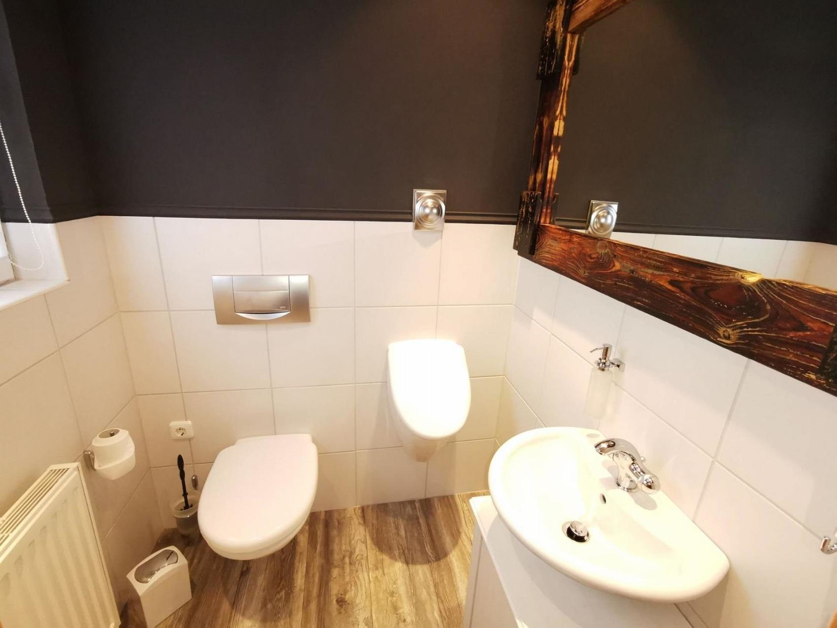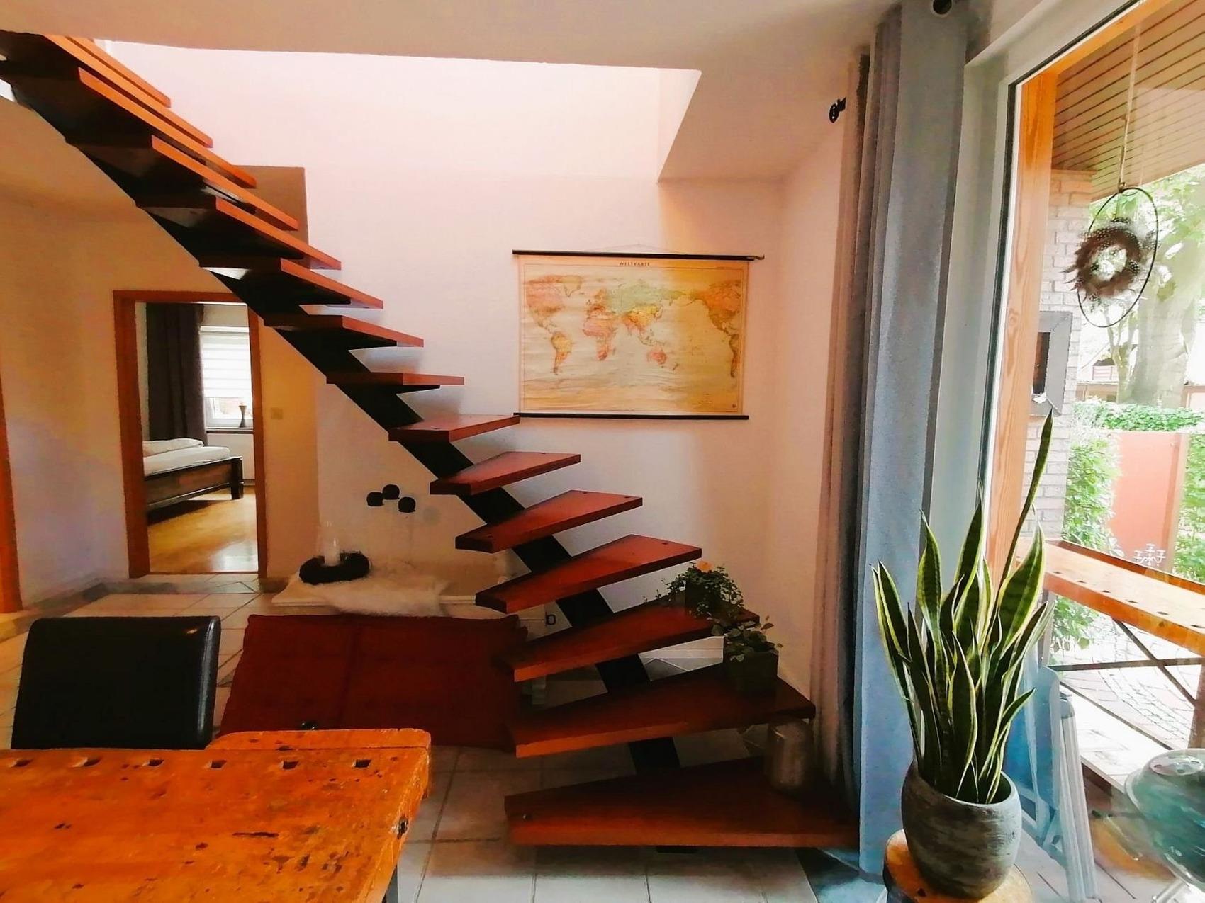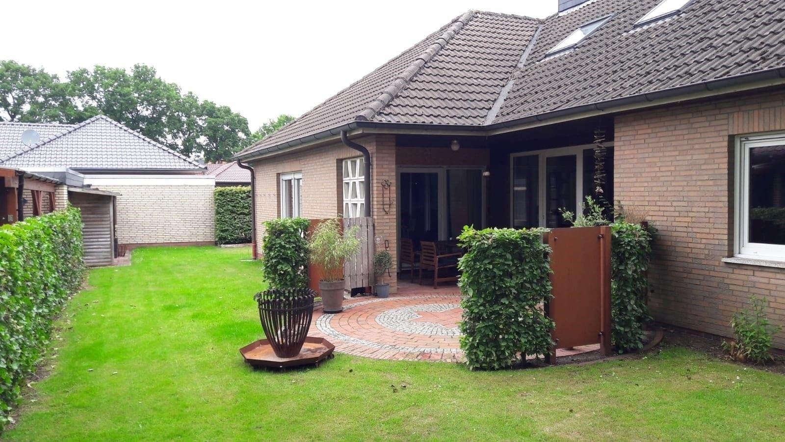 Komfortables Ferienhaus (160 qm) auf 2 Etagen mit 3 Schlafzimmern, Duschbad zusätzlich mit Badewanne, 2 Gästetoiletten und Arbeitszimmer.Das Haus liegt in einer ruhigen Wohnsiedlung und zugleich zentral mit zahlreichen Einkaufsmöglichkeiten.Das Haus eignet sich, durch die Nähe an Aurich, für Geschäftsleute, Monteure oder auch einen schönen Familienurlaub an der NordseeDie UnterkunftDer moderne und komfortable Bungalow (160qm) ist folgendermaßen ausgestattet:Erdgeschoss:Durch den Eingangsbereich kommen Sie in den zentralen Raum des Hauses, mit aufgearbeiteten Werkbänken, durch den Sie in alle Räume gelangen.In der geräumigen Küche macht es Spaß zu kochen. Sie ist komplett ausgestattet mit:GeschirrspülmaschineKühlschrankCeran-KochfeldBackofenMikrowelleWasserkocherToasterMixerTassimo Pad MaschineDeLonghi-EspressomaschineDirekt neben der Küche befindet sich ein Vorratsraum, in dem Sie die Waschmaschine und einen Gefrierschrank nutzen und Lebensmittel aufbewahren können.An die Küche grenzend befindet sich ein stilvoll eingerichtetes Esszimmer für 4 Personen.Im Erdgeschoss stehen Ihnen ein Gäste WC, ein geschmackvolles Tageslicht Badezimmer mit Dusche und Badewanne, sowie 2 Schlafzimmer zur Verfügung.Im ersten Schlafzimmer befindet sich ein Doppelbett (2x2m) mit indirekter Beleuchtung, hinter den Kopfstützen. Die Farben können nach Wunsch und Stimmung, gewechselt werden.Ein zusätzlicher Raum steht Ihnen als Ankleidezimmer zusätzlich zur Verfügung.Im zweiten, kleinem Schlafzimmer befindet sich ein Doppelbett (1,4x2m) und eine Kommode.Im Wohnzimmer können Sie auf der bequemen Relax-Sofalandschaft Entspannen und Fernsehen.Obergeschoss:Im einfach gehaltenen Obergeschoss befinden sich ein zusätzliches Schlafzimmer und eine Toilette mit zwei Waschbecken.In dem kleinem Arbeitszimmer finden Sie einen Schreibtisch mit Stuhl, kleines Schlafsofa (0,9 x 2m) , einen Laser- und Farbdrucker.Im Schlafzimmer OG befindet sich eine gemütliche Nische, in der eine Matratze (140 x 200) liegt. Dort können zwei Erwachsene problemlos schlafen.Kinder sind herzlich willkommen, es ist jedoch zu beachten, dass ins Obergeschoss eine moderne, geländerlose Treppe führt!Auf der Terrasse können Sie sich ebenfalls erholen. Ein Holzkohlegrill steht Ihnen zur Verfügung. Um das Haus herum, haben Sie eine riesige Rasenfläche auf der Sie sich, von Hecken geschützt, sonnen oder mit Ihren Kindern spielen können.Der Rasenbereich des Gartens, führt um das Haus herum, zum Hauseingang und Einfahrt. In diesem Bereich ist der Garten offen.Fahrräder können Sie selbst mitbringen oder beim in der Nähe gelegenen Fahrradhändler ausleihen. Diese können Sie dann in einem Fahrradraum sicher einschließen.Die Betten sind bei Anreise bezogen und Handtücher liegen bereit.Die auf den Bildern zu sehender Garage steht nicht zur Verfügung.