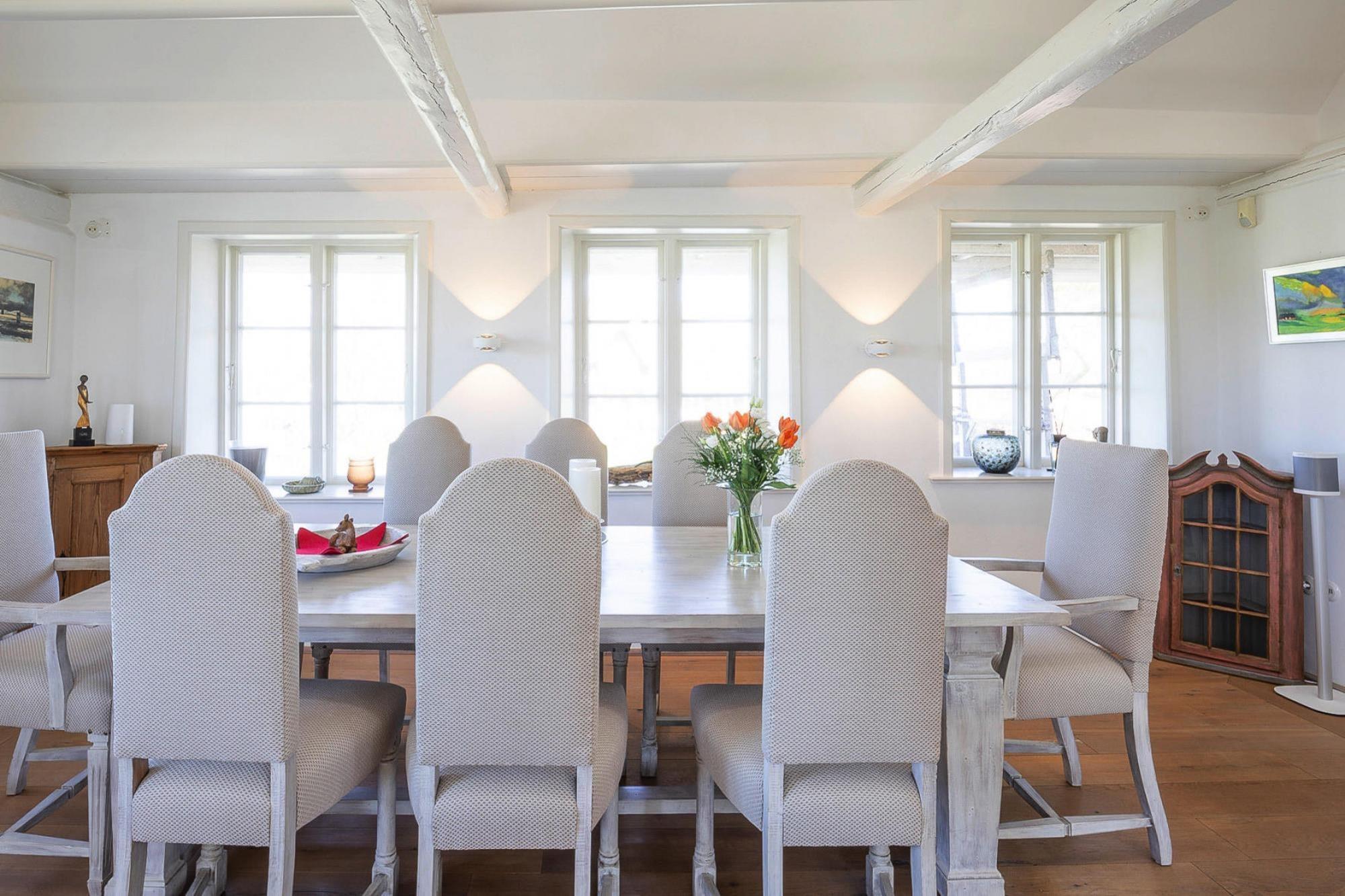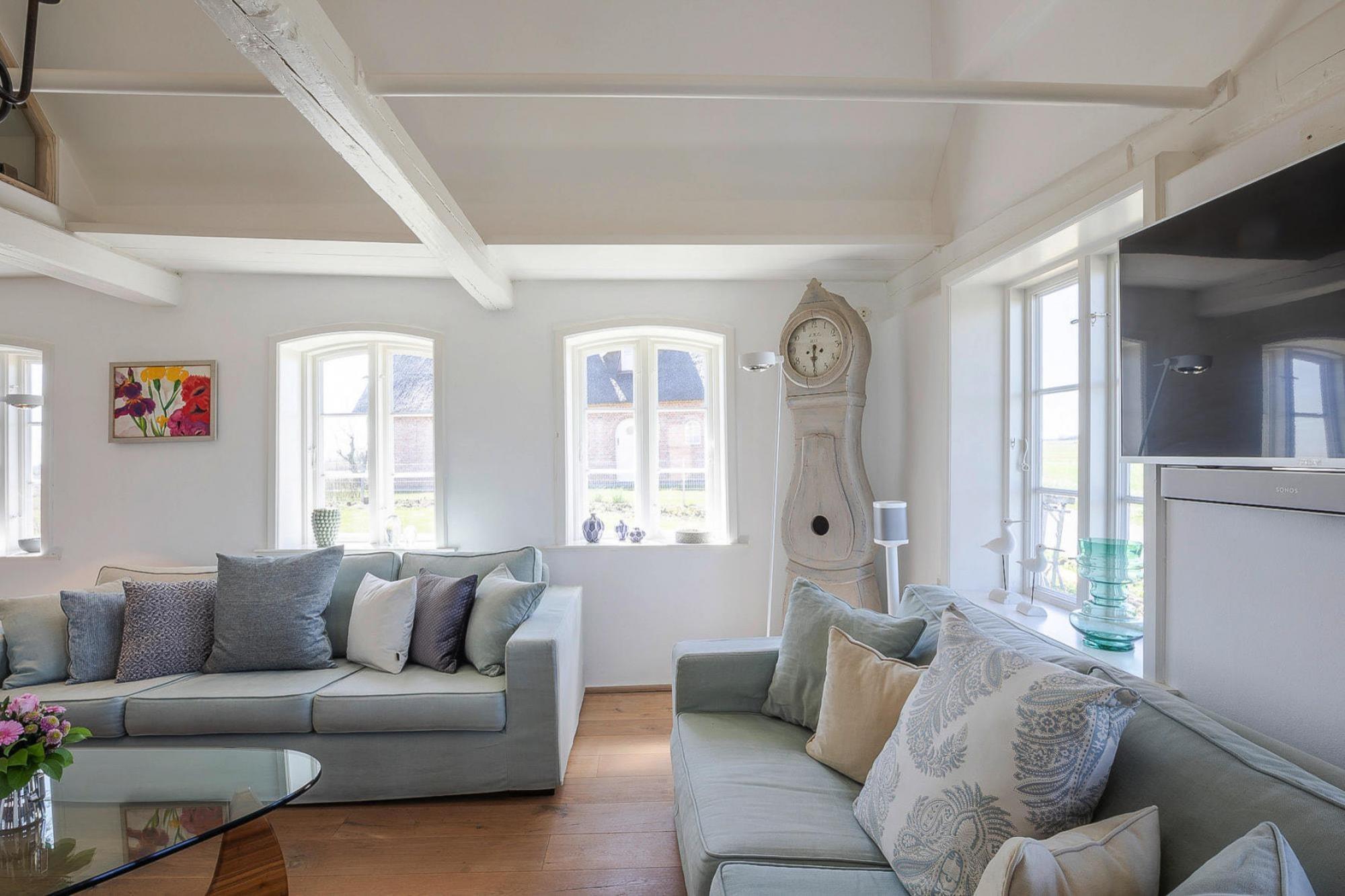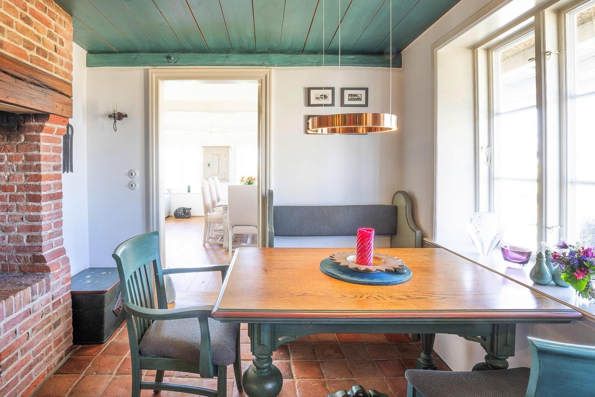Historisches Reetdachhaus, das aufwändig renoviert wurde und nun für maximal 6 Personen viel Platz und noch mehr Gemütlichkeit und Komfort bietet. Besonders Highlight ist das Bad mit Whirlpool und ebenerdiger Dusche. Der großzügige und stilvolle Wohnbereich besticht mit reichlich Multimedia: Flachbild-TV, blueray-Player und eine Dolby-Surround-Musikanlage versprechen besonderen Genuss von Filmen und Musik. Die Küche ist hervorragend ausgestattet und Sie können hier jeden Sternekoch aus dem Rennen schlagen. Der offene Kamin ist ein weiteres Highlight für gemütliche Stunden im Haus. Bei schönem Wetter genießen Sie die Zeit im Strandkorb auf der einen Terrasse, oder es wird im großen Garten mit der ganzen Familie getobt und gespielt. Aventoft ist ein kleiner Ort nahe an der Dänischen Grenze. Einen kurzen Fußweg vom Ferienhaus entfernt liegt nicht nur ein schöner Badesee (Hülltoft Tief), sondern auch das schöne und bekannte Nolde-Museum: ein Muss für alle Kunstliebhaber und Kulturbegeisterte. Das Freibad in Aventoft ist in der Sommersaison täglich geöffnet. HighLights: Verbrauchsabhängige Energiekosten, Bettwäsche, Handtücher, Endreinigung, WLAN Das Freibad in Aventoft ist in der Sommersaison täglich geöffnet. Die Nordsee- und Düneninsel RØmØ liegt ca. 45 km entfernt, die Nordsee-Badestelle Südwesthörn 19 km.