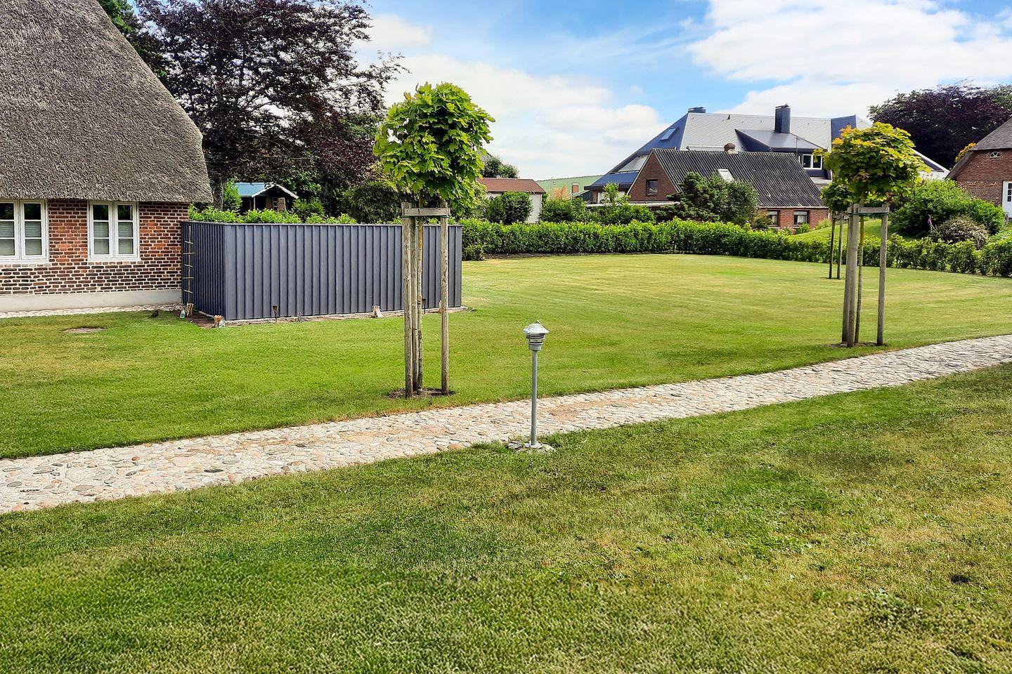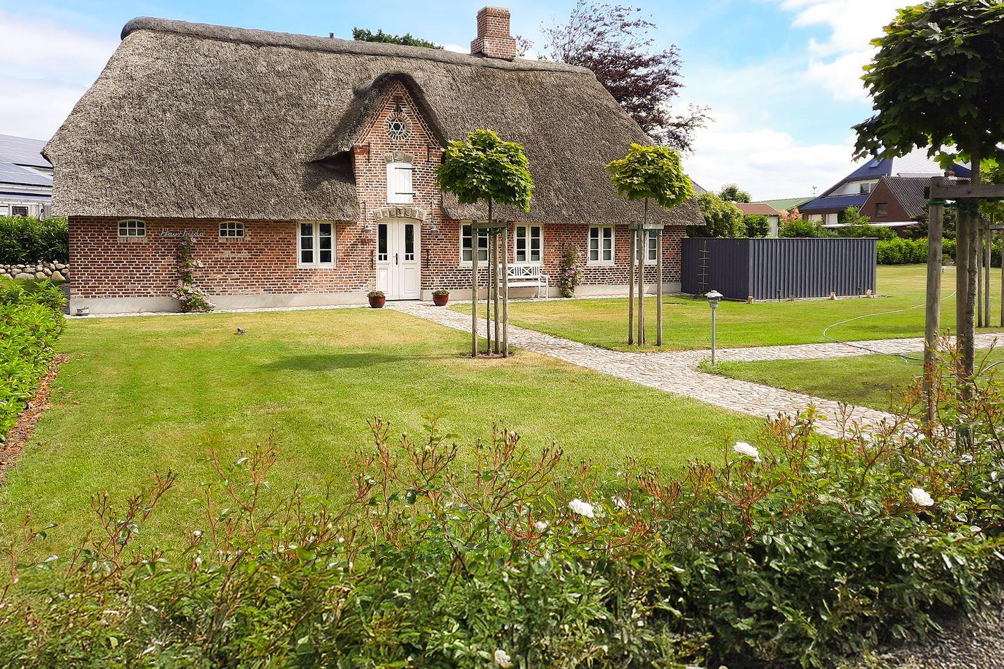Historisches Reetdachhaus Frieda in ruhiger Lage bei Aventoft an der dänischen Grenze mit Garten und Terrasse.