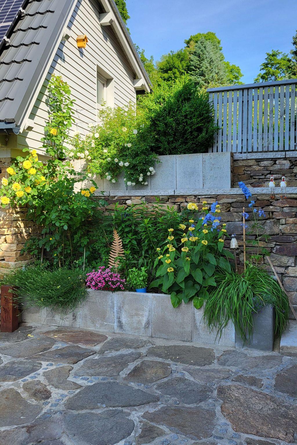 - komplett eingefriedet (mit Mauer, Zaun oder Hecke)