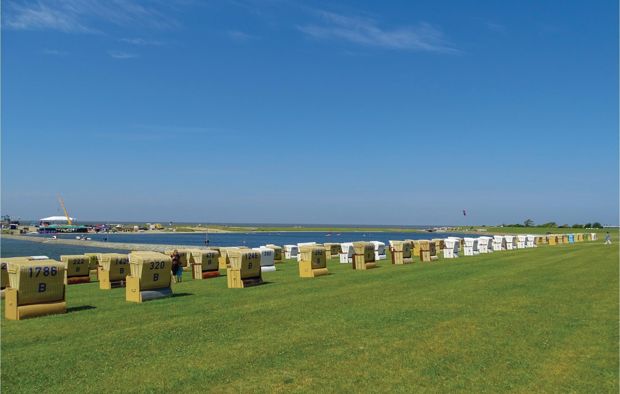 Moderne Ferienwohnung Strandläufer in Büsum-Warwerort mit Balkon und Deichblick, nahe Nordsee und Golfplatz.