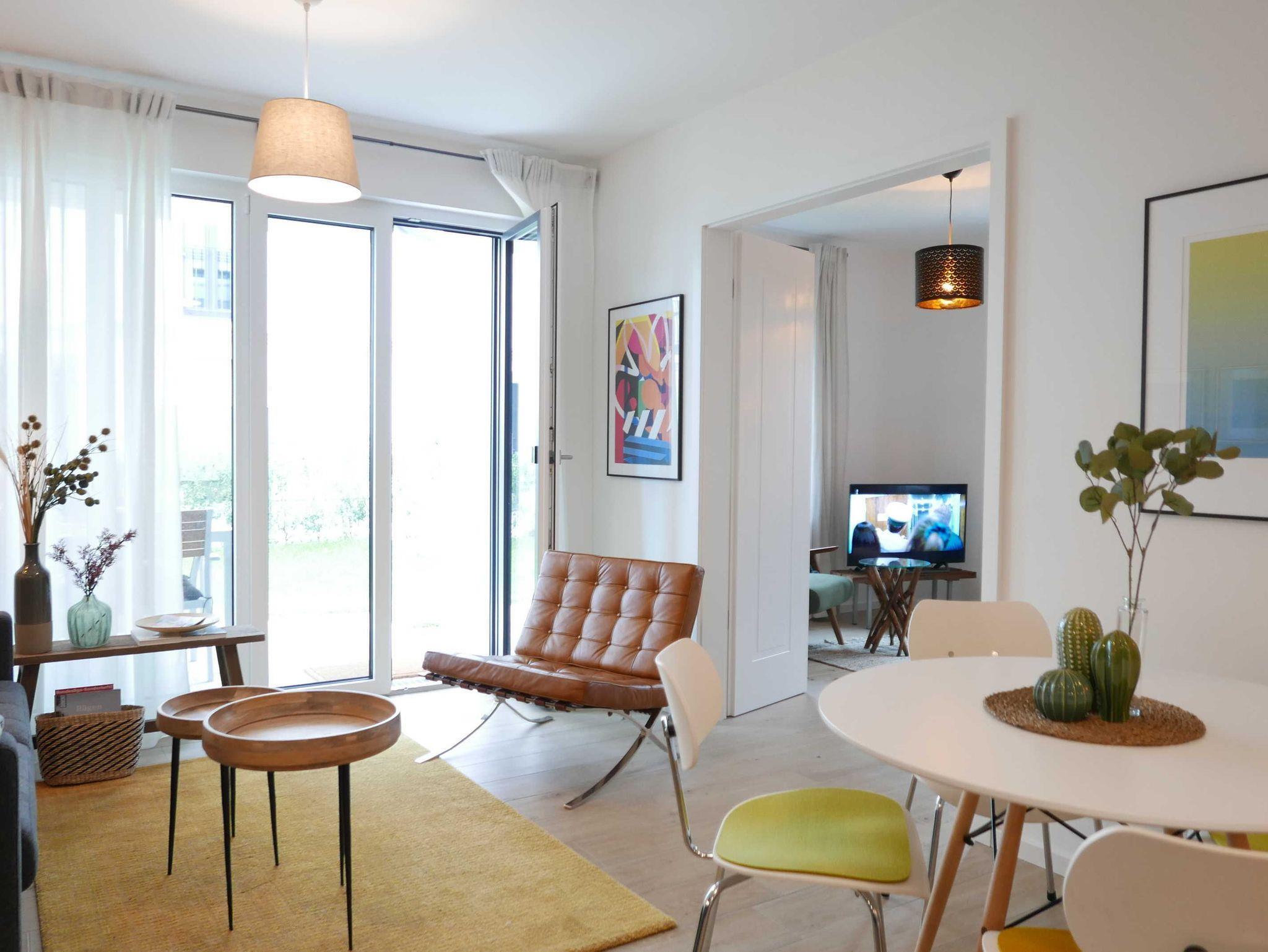 Moderne Design-Ferienwohnung mit Terrasse, Garten und Meerblick in exklusiver Anlage nahe Strand in Baabe.