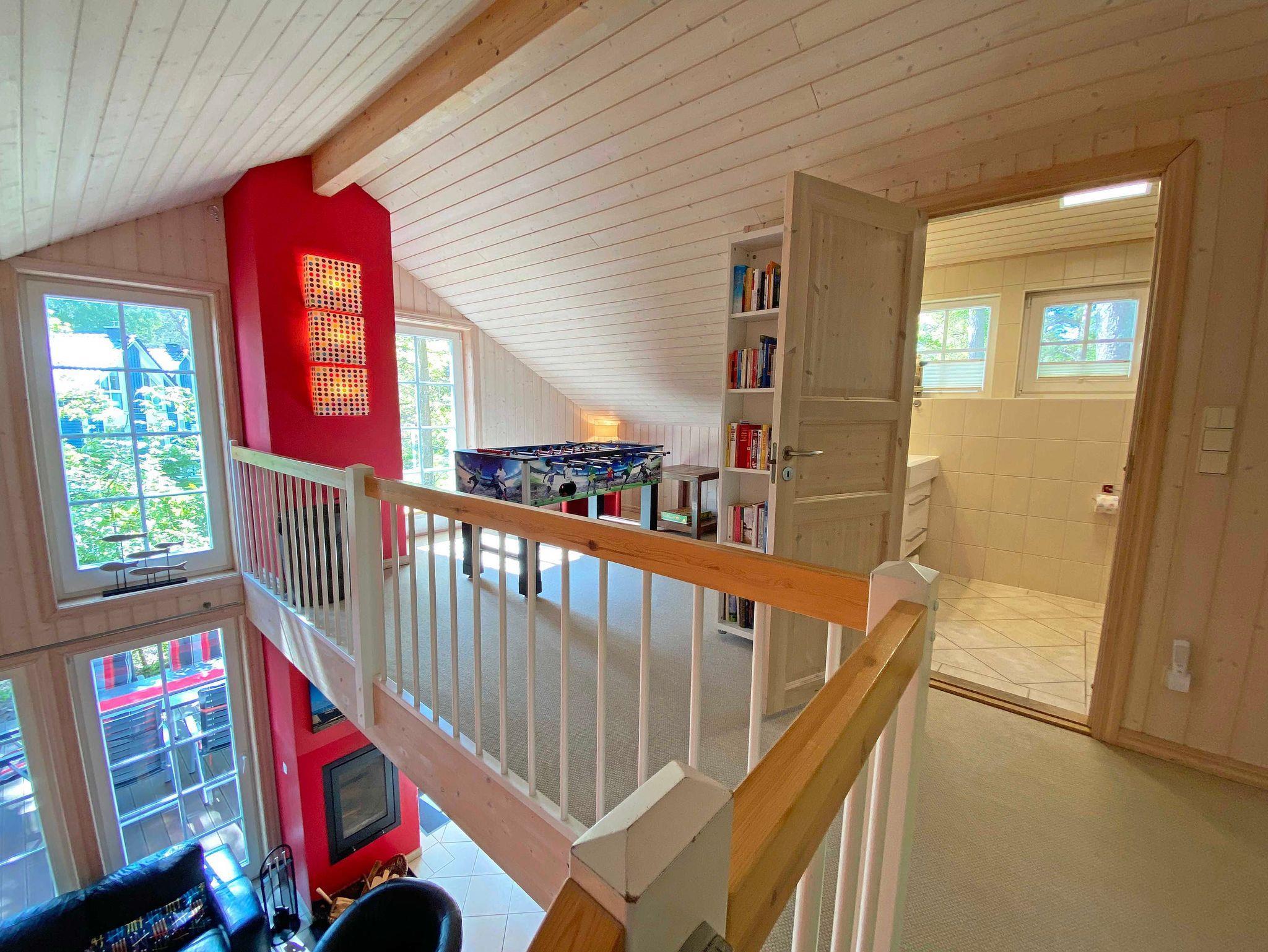 Das liebevoll eingerichtete ca. 85 qm große Nichtraucher Strandhaus „Ostseewelle“ im skandinavischen Stil mit Kamin und Sauna ist optimal geeignet für 6 Erwachsene und 1 Kleinkind bis 3 Jahre im Kinderreisebett. Durch einen kleinen Eingangsflur mit Garderobe und Schuhregalen betreten Sie Ihr Strandhaus. Im Erdgeschoss befindet sich der Wohn-/Essbereich mit gemütlicher Ledercouchecke, 2 Sesseln, Highboard mit Smart-TV, Blu-Ray-Player, Mini-Stereoanlage mit USB-Anschluss sowie ein Philips DAB Radio. Auch auf einen Internetzugang (WLAN) brauchen Sie nicht verzichten. Dieser ist für Sie inklusive. Wer es abends gern noch ein bisschen gemütlicher mag, der zündet den Kamin im Wohnraum an und lässt den Tag bei einem Glas Wein ausklingen. Dem Wohnbereich angeschlossen ist die Einbauküche, die mit allen Geräten ausgestattet ist, wie Sie es von zu Hause kennen: Geschirrspüler, Kühlschrank mit Gefrierfach, Ceranherd mit Backofen, Mikrowelle, Kaffeemaschine, SENSEO Kaffeemaschine, Wasserkocher, Toaster, Mixer und ambitionierte Hobbyköche finden eine große Auswahl an Küchenutensilien. Der große Esstisch bietet Platz für 6 Personen. Vom Wohnbereich gibt es einen direkten Zugang zur sonnigen Terrasse (Süd/Ost), welche mit bequemen Terrassenmöbeln ausgestattet ist. Zum Grillen können Sie den Elektrogrill nutzen. Im kleinen Abstellraum unter der Treppe finden Sie die Stuhlauflagen und einige Reinigungsutensilien. Das freundlich eingerichtete Schlafzimmer im Erdgeschoss ist mit 2 Boxspringbetten (0,90 m x 2,00 m), Nachttischkonsolen, Leseleuchten und Kleiderschrank ausgestattet. Das große Bad auf gleicher Ebene verfügt über eine Dusche, Sauna und einen Whirlpool welches Ihr „Wellnessbereich“ zum Verwöhnen ist! Auch ein Waschplatz, WC und Fön gehören dazu. Eine Waschmaschine/Trockner für die kleine Wäsche ist ebenfalls im Bad. Über eine Holztreppe erreichen Sie das lichtdurchflutete Obergeschoss. Auf der Galerie gibt es einen Tisch - Kicker für gesellige „Fußballspiele“ und eine Leseecke mit Sesseln. Zwei weitere Schlafzimmer mit Boxspringbetten (1 SZ mit Doppelbett 1,80 m x 2,00 m, 1 SZ mit zwei Einzelbetten 0,90 m x 2,00 m), Kleiderschränken, ein TV-Flachbild, Ablagen mit Leseleuchten sowie ein zweites großes Tageslicht-Bad mit Dusche, WC, Waschplatz, Kosmetikspiegel sind ebenfalls im Obergeschoss untergebracht. Das Haus verfügt im gefliesten Erdgeschoss über eine Fußbodenheizung. Das mit Teppichboden belegte OG ist mit individuell einstellbaren Wandheizkörpern ausgerüstet. Alle Räume haben Insektenschutzgitter. Für die kleinen Gäste halten wir 1x Hochstuhl, 1x Kinderreisebett und eine Treppenschutztür (im Obergeschoss) bereit. Auf dem Grundstück steht unseren Gästen ein PKW-Stellplatz (Nr. 02) zur Verfügung. Ihre geliehenen oder mitgebrachten Fahrräder können Sie am Haus (einbetonierter Fahrradbügel) abstellen und anschließen. 2 Haustiere sind mit eigenen Schlafplätzen gegen eine Gebühr gern gesehene Gäste. Die Erstausstattung eines Wäschepaketes (komplette Bettwäsche, 1 Duschhandtuch, 2 kleine Handtücher) können Sie bis 14 Tage vor Anreise gegen einen Aufpreis dazu buchen oder durch eigene ergänzen. Ab 2 gebuchten Paketen erhalten Sie einmalig 1 Geschirrtuch und einen Duschvorleger dazu.