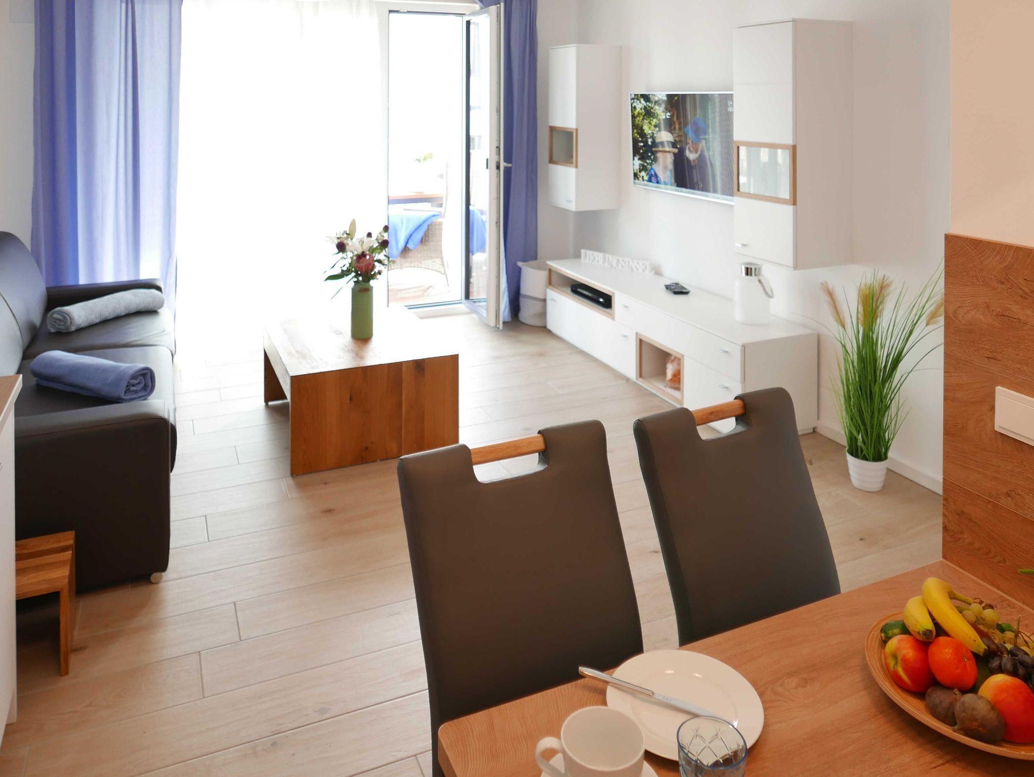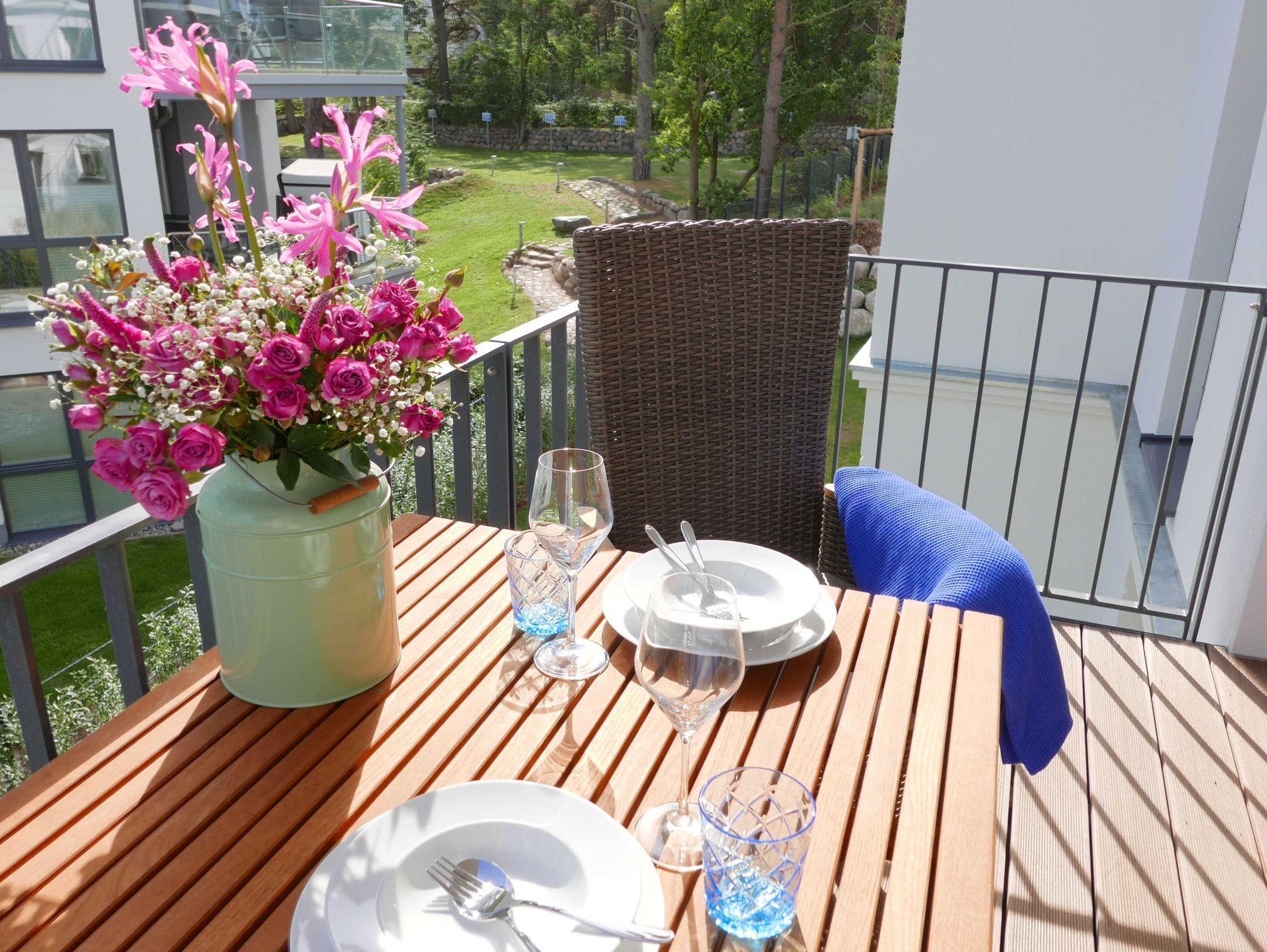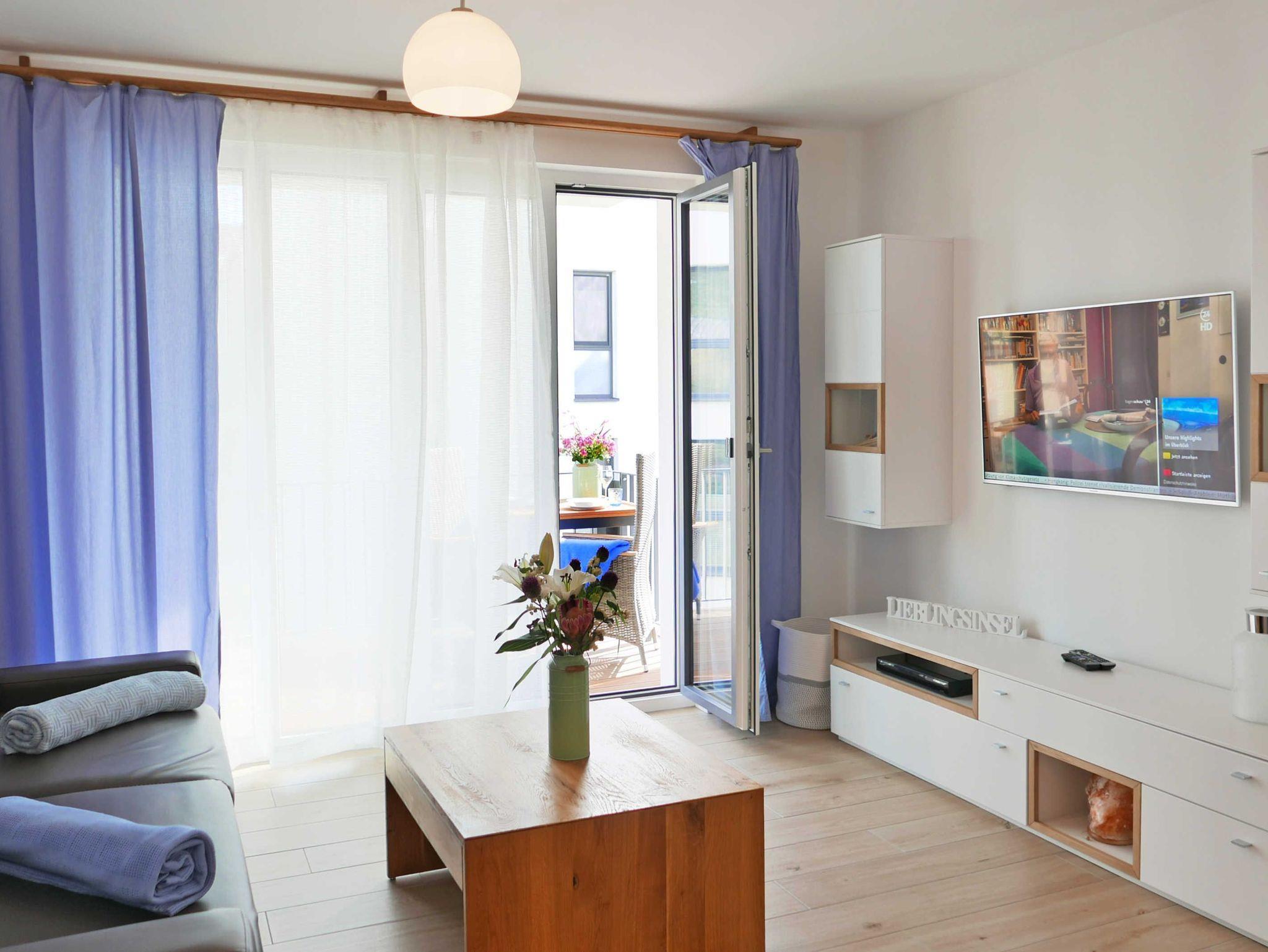 Moderne 2-Zimmer-Ferienwohnung mit Balkon nahe dem Baaber Strand für erholsame Ostseeferien.