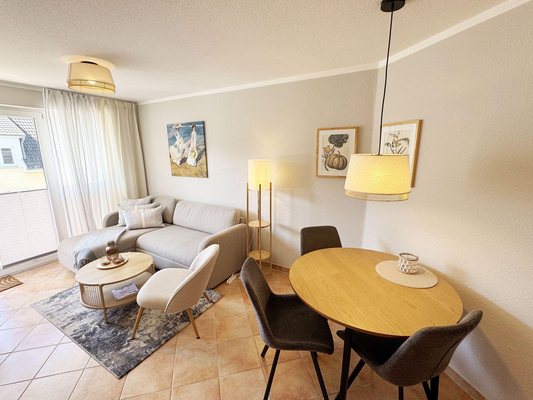 Modernes 2-Raum-Appartement mit Südbalkon, nur 300 m vom feinsandigen Ostseestrand in Baabe entfernt.