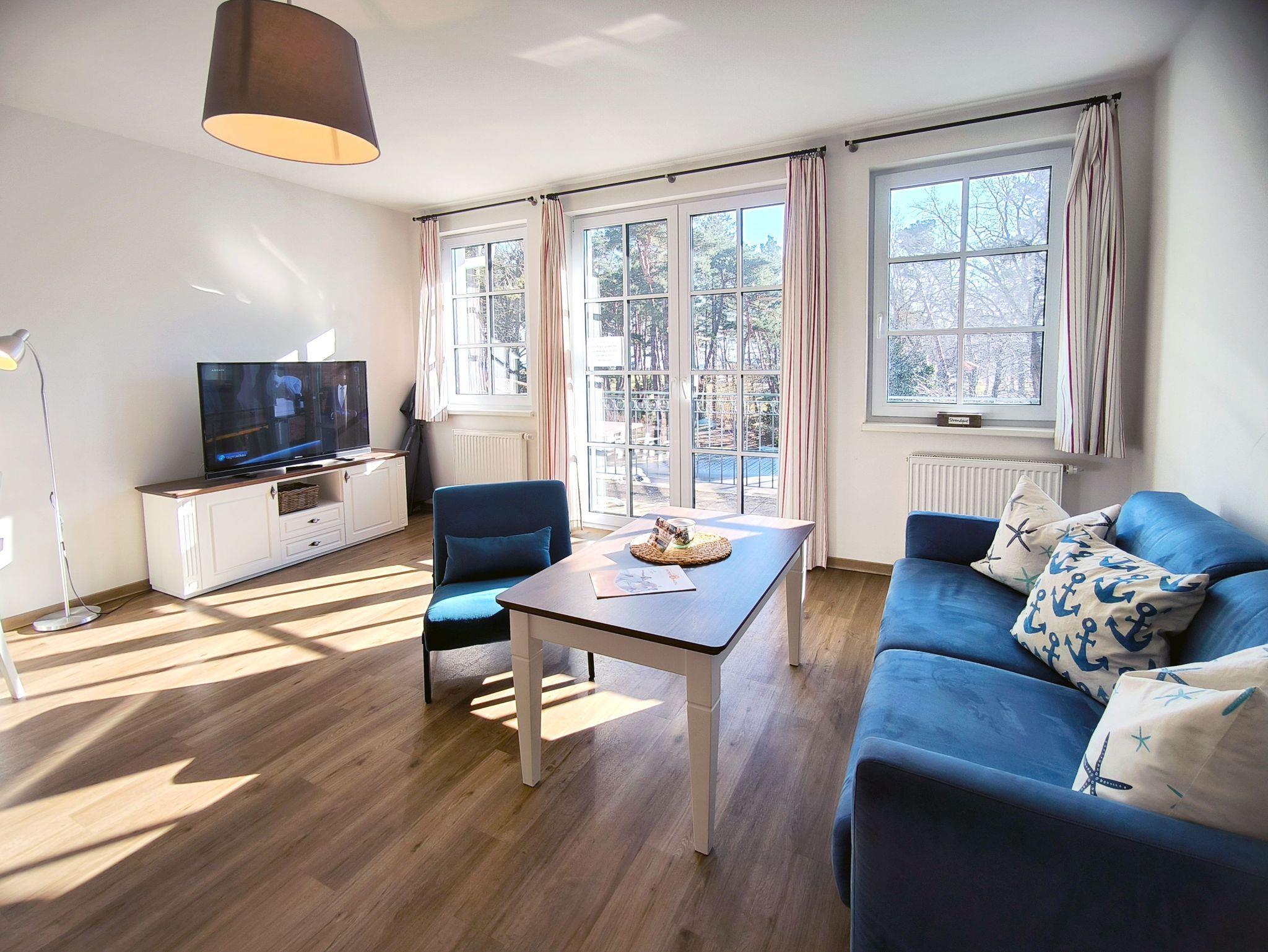 Helle 2-Zimmer-Ferienwohnung mit Meerblick, Balkon und WLAN in Baabe, direkt am Strand im Inselparadies.