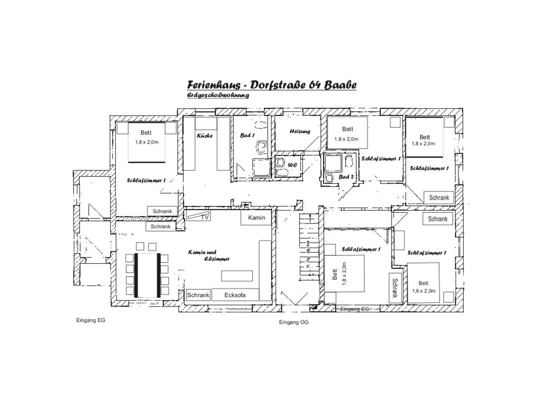 Großzügige Ferienwohnung mit 5 Schlafzimmern, Garten und Terrasse in Baabe, perfekt für Familien und Gruppen bis 10 Personen.