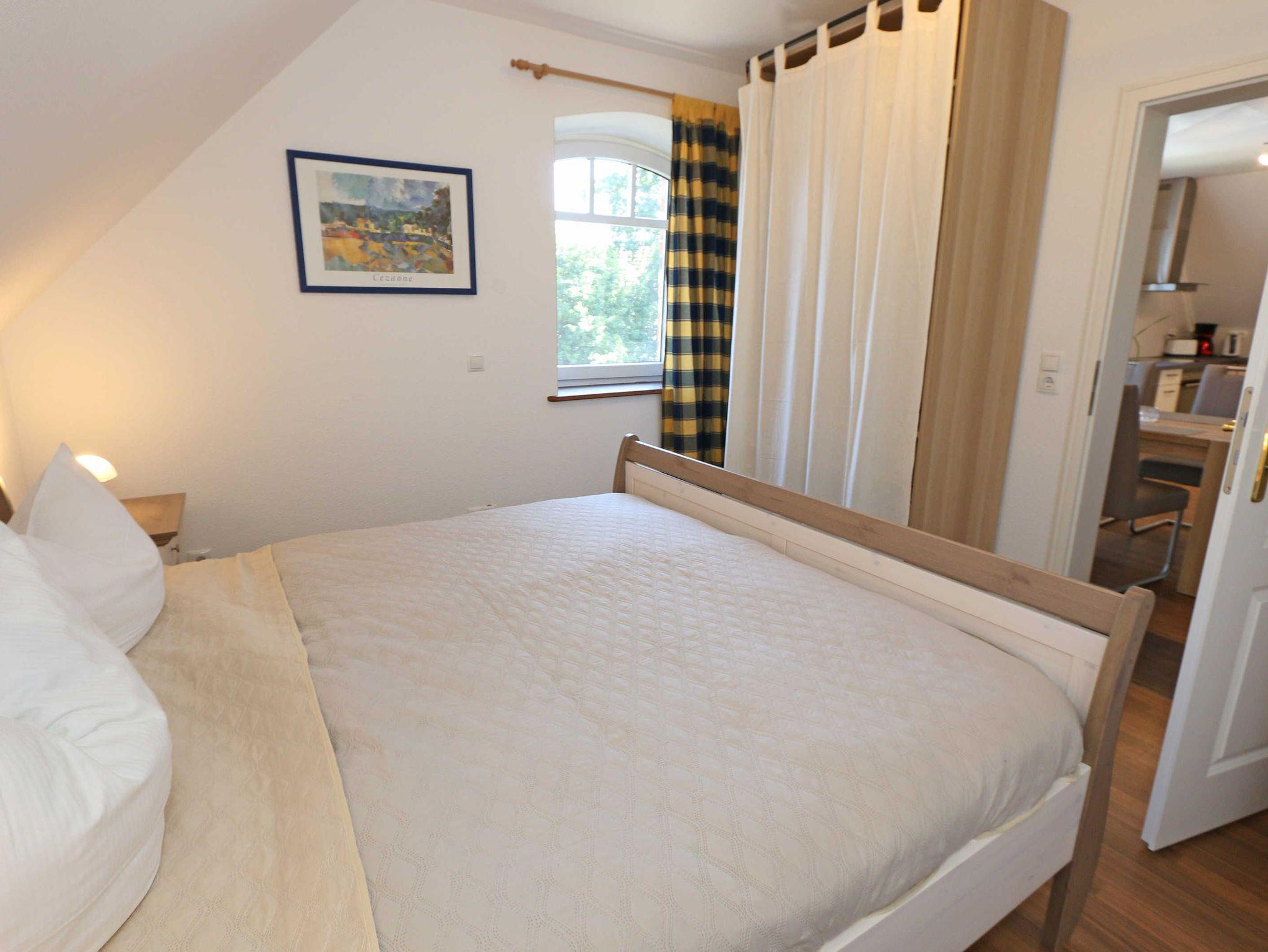 Die großzügige Nichtraucherferienwohnung 02, welche sich über 2 Etagen erstreckt, befindet sich in der 1. Etage des Hauses. Mit Ihren ca. 90 m² bietet Sie ausreichend Platz für max. 6 Erwachsene + 2 Kleinkinder bis 3 Jahre im Kinderreisebett. Auf einer Ebene befinden sich ein Schlafzimmer, ein großes Bad sowie die großzügige Küche mit angrenzendem Wohnbereich. Der gemütliche Wohnbereich umfasst eine große Couchecke mit Couchtisch, Leselampe, Sideboard, Smart-TV sowie eine Mini-Stereo-Anlage. An kühleren Tagen sorgt ein Kamin für Gemütlichkeit und Wärme. Auch auf einen Internetanschluss (WLAN) brauchen Sie im Urlaub nicht verzichten. Dieser ist inklusive für Sie. Von hier gelangen Sie auf den bestuhlten Süd/West Balkon. Die angrenzende und vollausgestattete Küche verfügt über einen Geschirrspüler, Backofen mit Ceranfeld und Abzugshaube, einen großen Kühlschrank mit Eisfach, Mikrowelle, Kaffeemaschine, Toaster, Wasserkocher und diverse Küchenutensilien. Ein Esstisch rundet diesen Bereich ab. Das 1. Schlafzimmer verfügt über ein Doppelbett (1,80 m x 2,00 m), verstellbare Lattenroste, Nachttischablagen, einen Kleiderschrank, Verdunklungsmöglichkeit sowie ein Smart-TV. Das großzügige Tageslicht-Bad umfasst eine Eckbadewanne, eine Dusche, ein WC, einen Waschtisch sowie einen Fön. Über eine Treppe vom Küchenbereich gelangen Sie in die obere Etage. Das 2. Schlafzimmer mit Dachschrägen verfügt über ein Doppelbett (1,80 m x 2,00 m), einen Kleiderschrank, Verdunklungsmöglichkeiten sowie einen Schreibtisch. Das 3. Schlafzimmer verfügt über ein Doppelbett (1,60 m x 2,00 m), verstellbare Lattenroste, Nachttischablagen, einen Kleiderschrank, Verdunklungsmöglichkeiten sowie einen Smart-TV. Ein Gäste-WC mit kleinem Waschbecken rundet die obere Etage ab. Alle Räumlichkeiten wurden mit Fliesen sowie einer Fußbodenheizung ausgestattet. Mit einem eigenen und mitgebrachten Schlafplatz sind max. 2 Haustiere gegen eine Gebühr gern gesehene Gäste. Ihre mitgebrachten oder auch geliehenen Fahrräder können Sie im Schuppen unterstellen. Im separaten Waschhaus können Sie gegen eine Kasse des Vertrauens eine Waschmaschine und einen Trockner nutzen. Ein PKW-Stellplatz mit Ladestation befindet sich direkt am Haus. Die Erstausstattung eines Wäschepaketes (komplette Bettwäsche, 1 Duschhandtuch, 1 kleines Handtuch) können Sie bis 14 Tage vor Anreise gegen einen Aufpreis dazu buchen oder durch eigene ergänzen. Ab 2 gebuchten Paketen erhalten Sie einmalig 1 Geschirrhandtuch und 1 Duschvorleger hinzu.