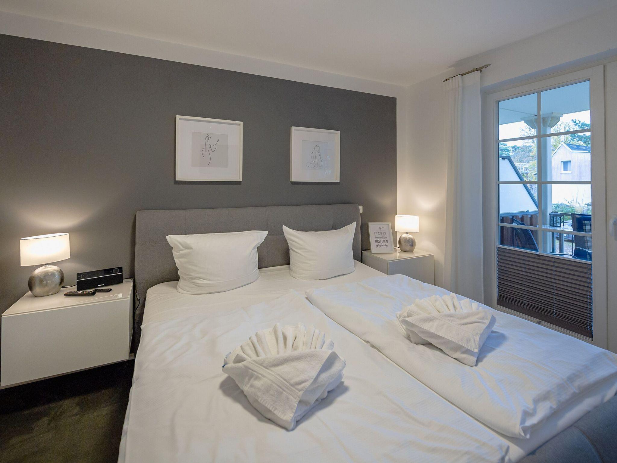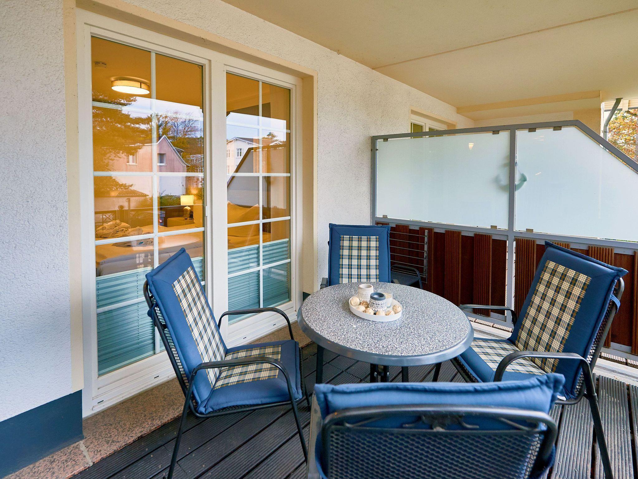 Elegante 2-Zimmer-Wohnung mit möbliertem Balkon in Baabe, Ostsee, ideal für entspannte Urlaubstage.