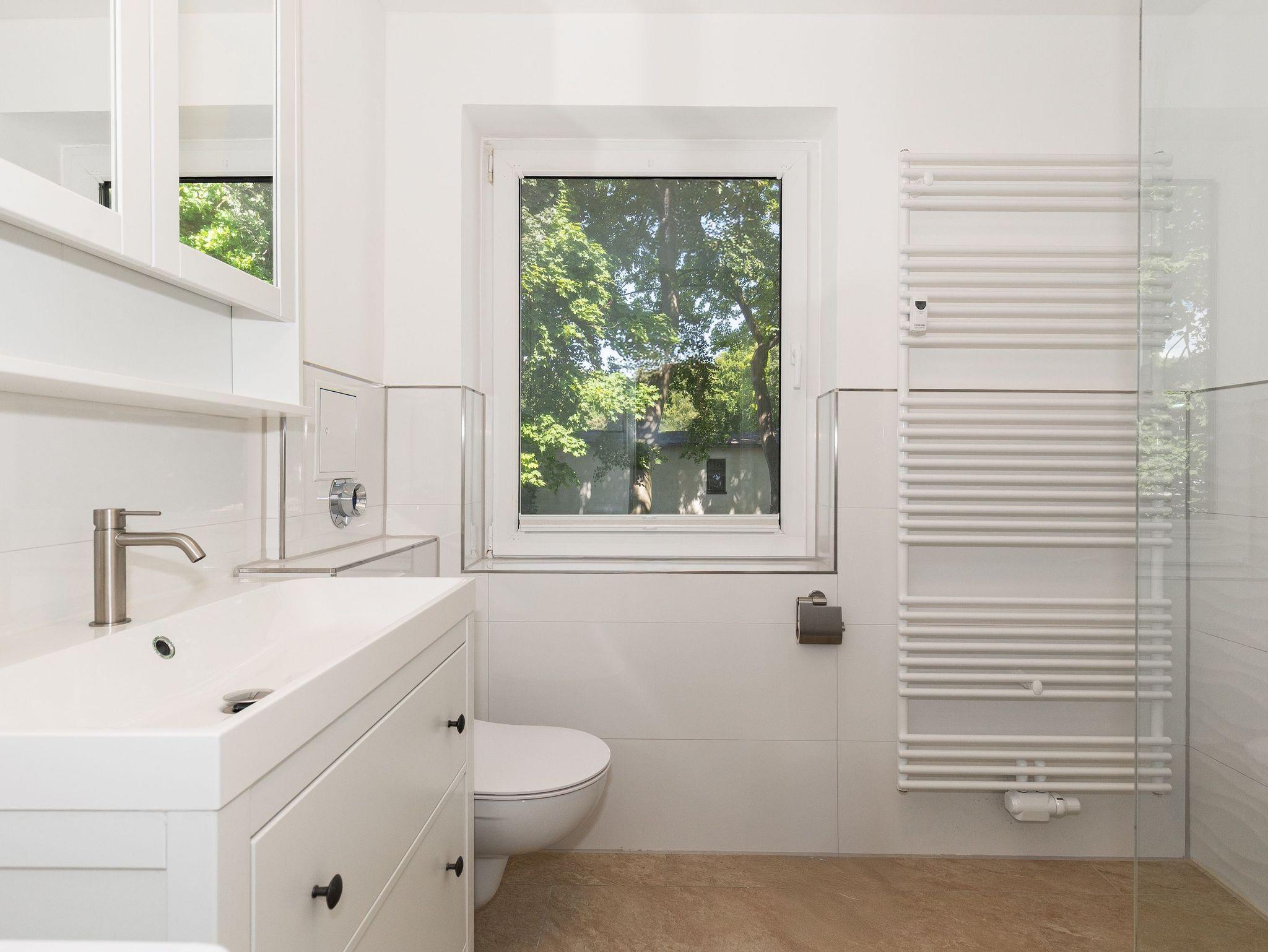 Das moderne Badezimmer verfügt über eine ebenerdige Dusche sowie eine Waschmaschine, ideal auch für längere Aufenthalte. Kostenloses WLAN ist selbstverständlich vorhanden, ebenso wie ein eigener Parkplatz direkt an der Wohnung ? bequem und stressfrei.