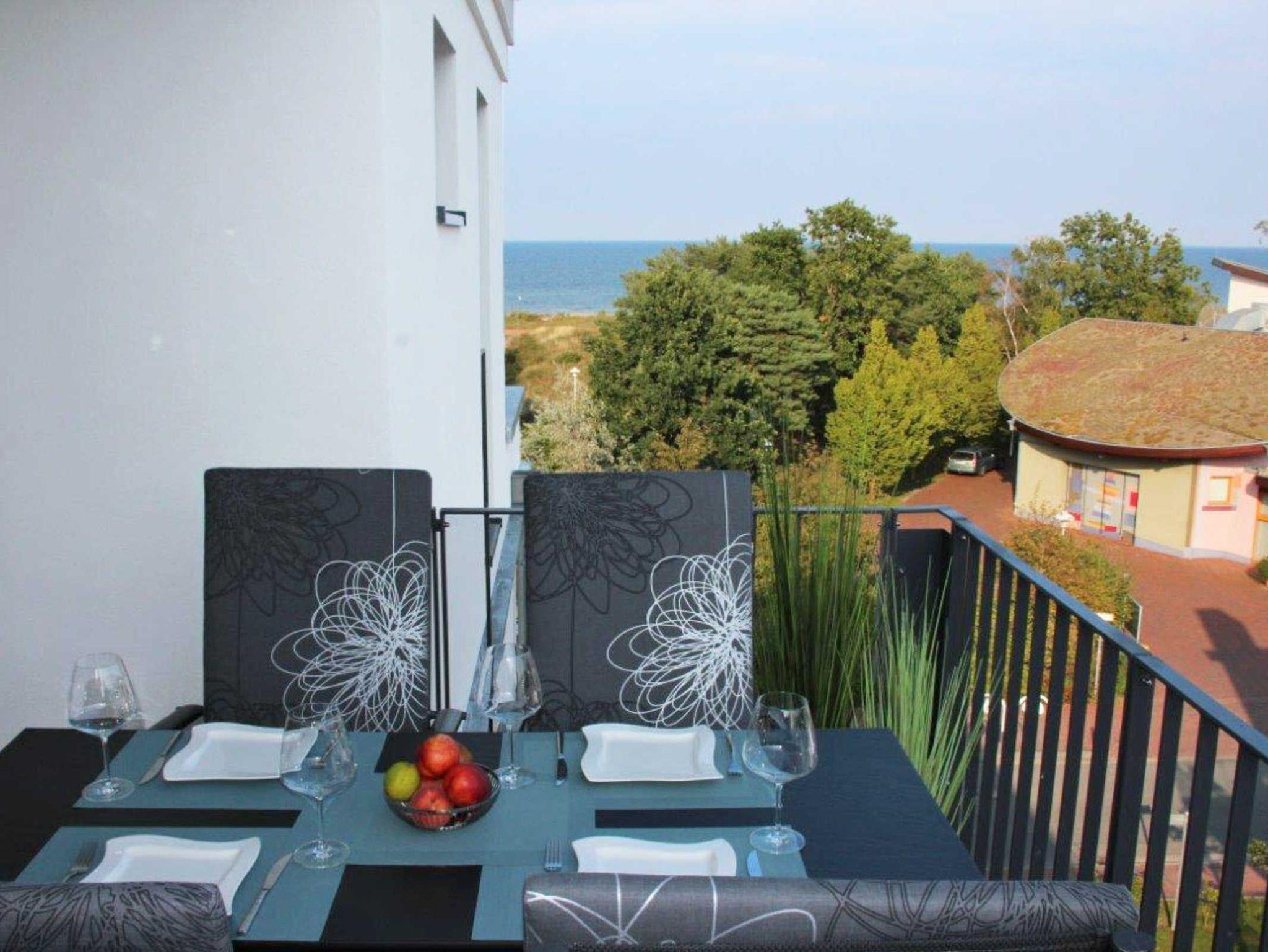 Luxuriöses Penthouse in Baabe mit Meerblick, eigener Sauna und zwei Balkonen für entspannte Ostseeferien.