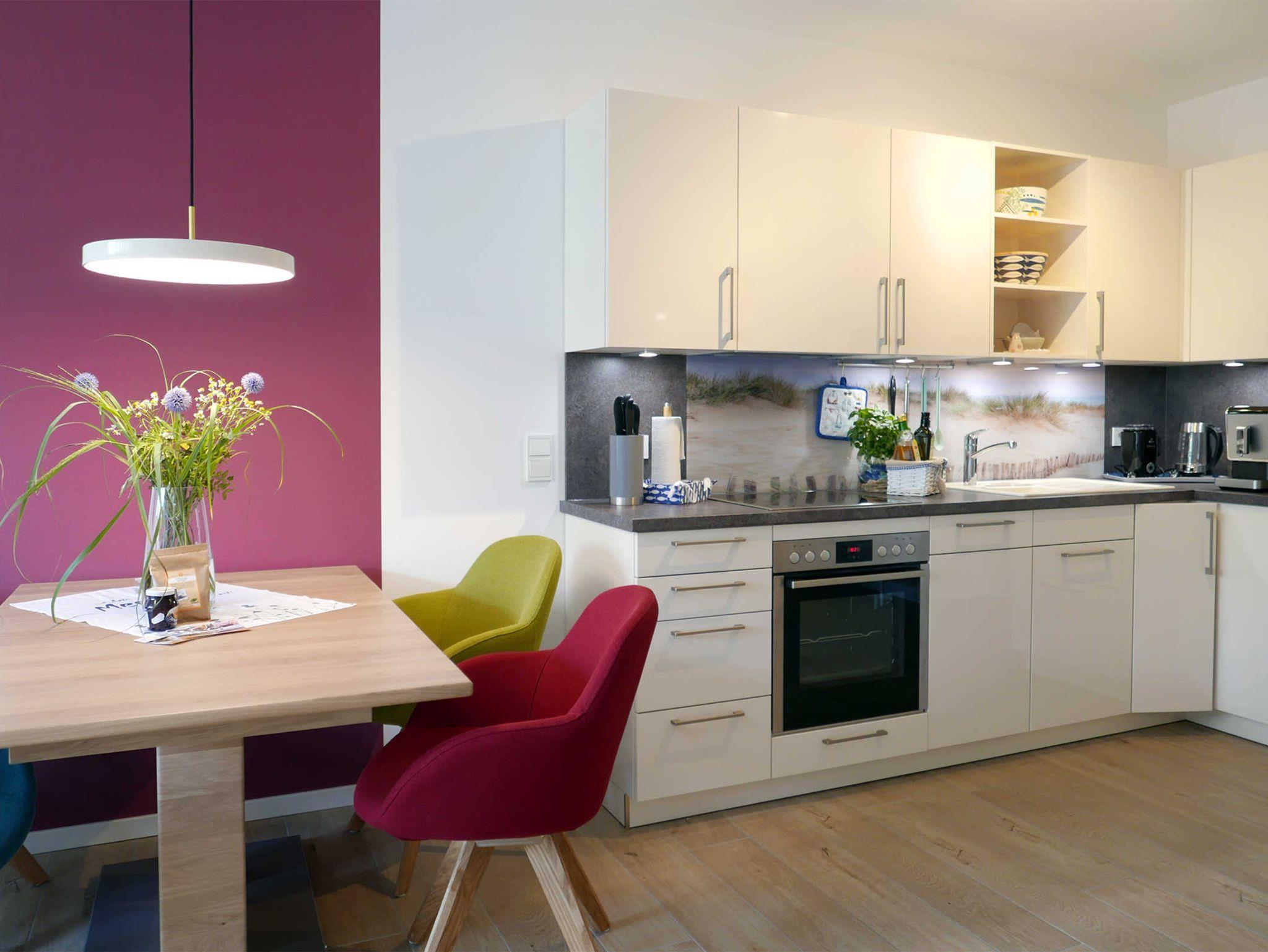 In dieser wunderbar modernen 2-Zimmer-Ferienwohnung mit einer Terrasse und einem kleinen Garten stellt sich direkt das Urlaubsgefühl ein ? spätestens, wenn man das Meeresrauschen in dem wohnungseigenen Strandkorb oder den seitlich eingeschränkten Meerblick genießt.