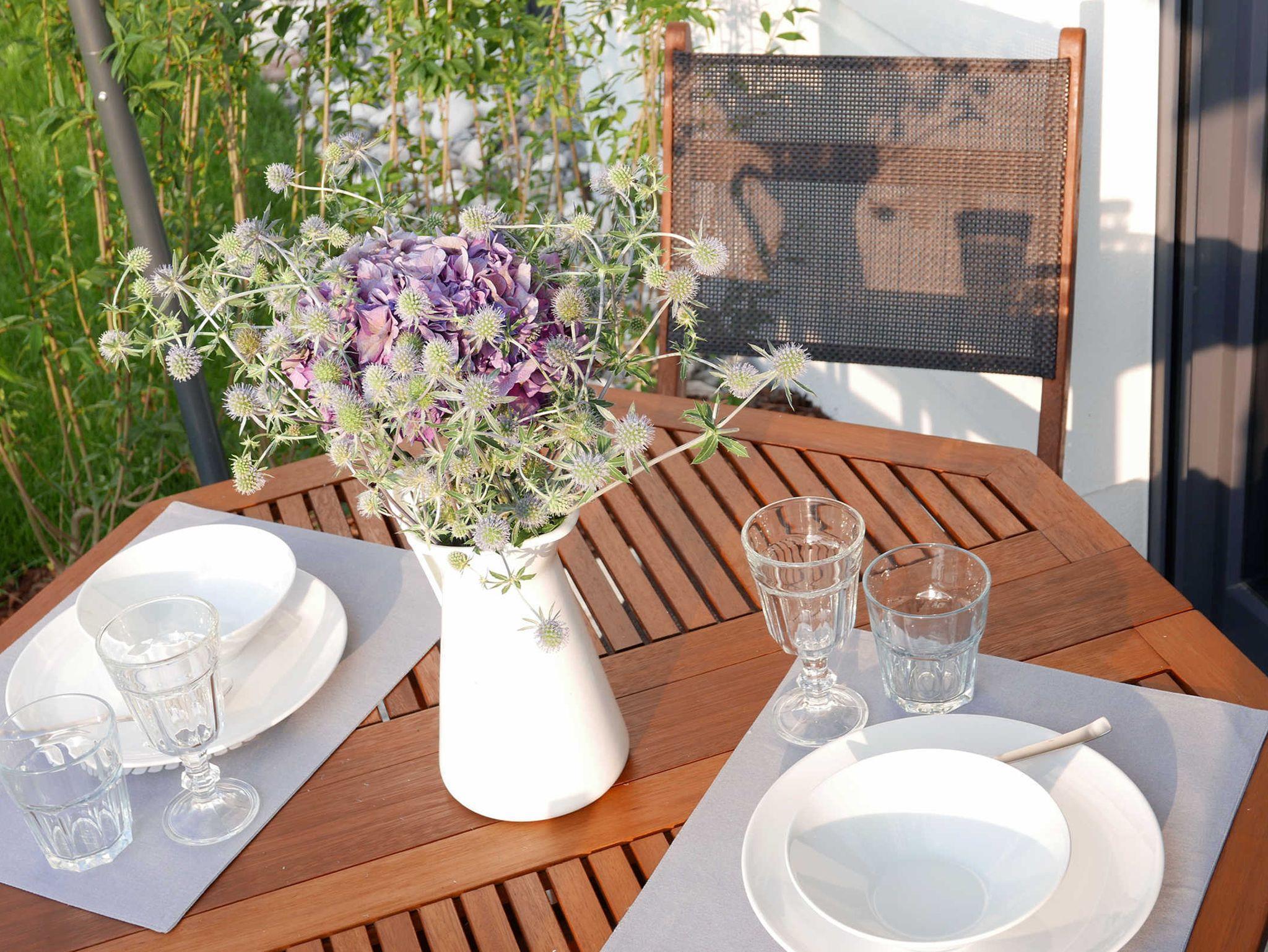 Moderne 2-Zimmer-Ferienwohnung in Baabe mit Terrasse, kleinem Garten, Strandkorb und seitlich eingeschränktem Meerblick.