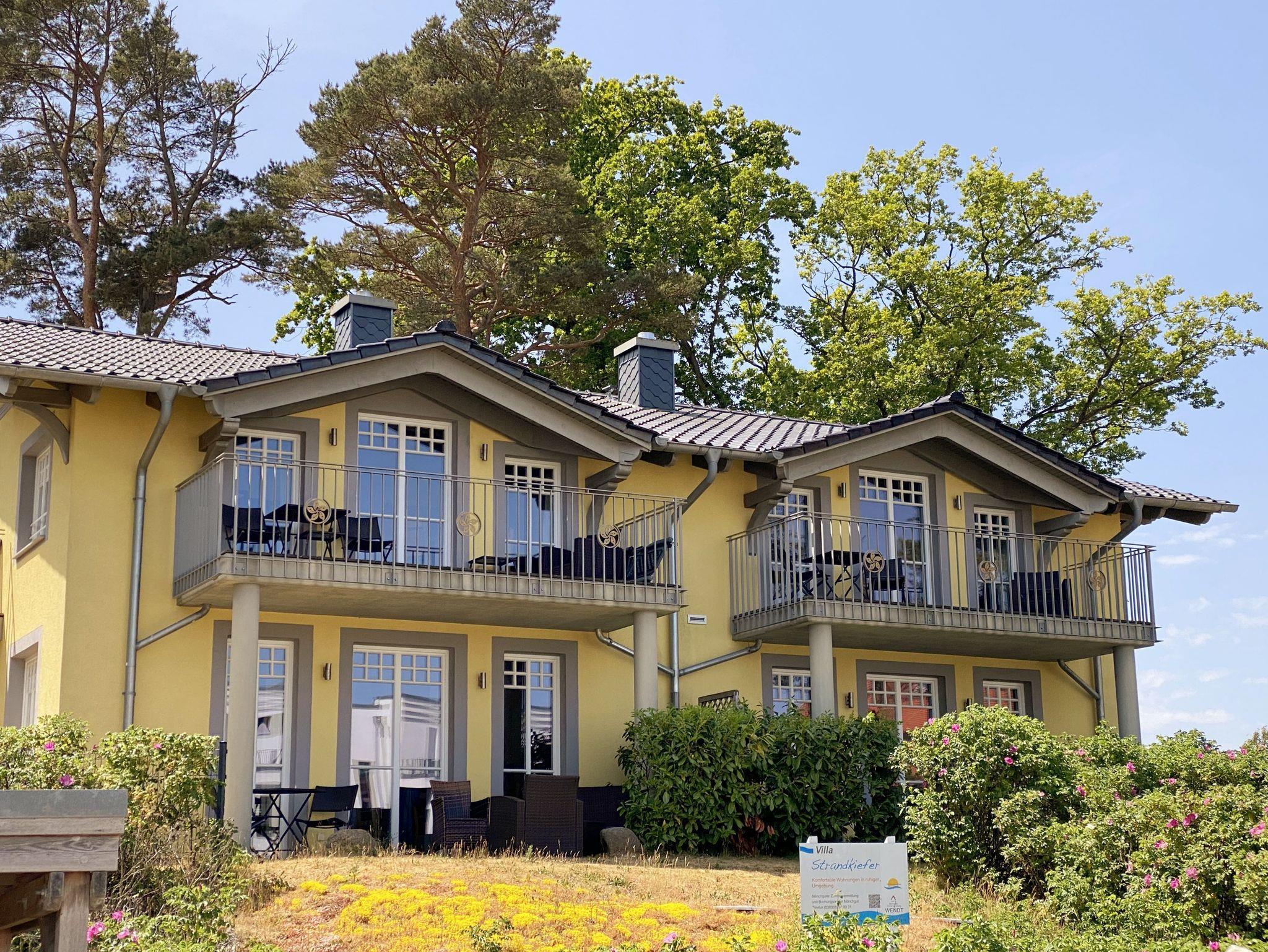 Das Haus Strandkiefer in Baabe bietet strandnahe Ferienwohnungen mit Kamin, Balkon und Meerblick für entspannte Urlaube.