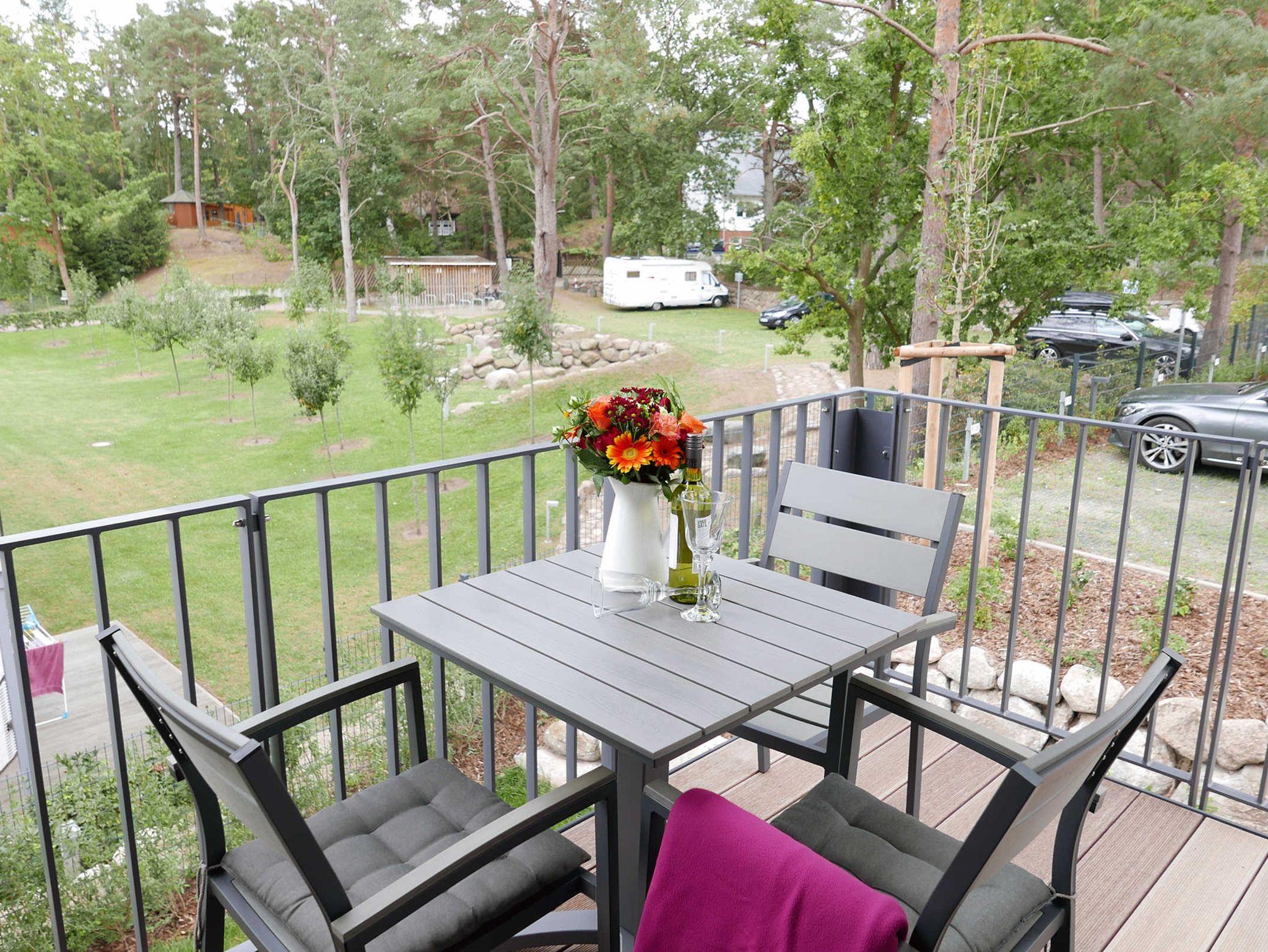 Moderne 2-Zimmer-Ferienwohnung mit Balkon und Meerblick in Baabe, direkt am Strand, ideal für entspannte Ostseeferien zu zweit.