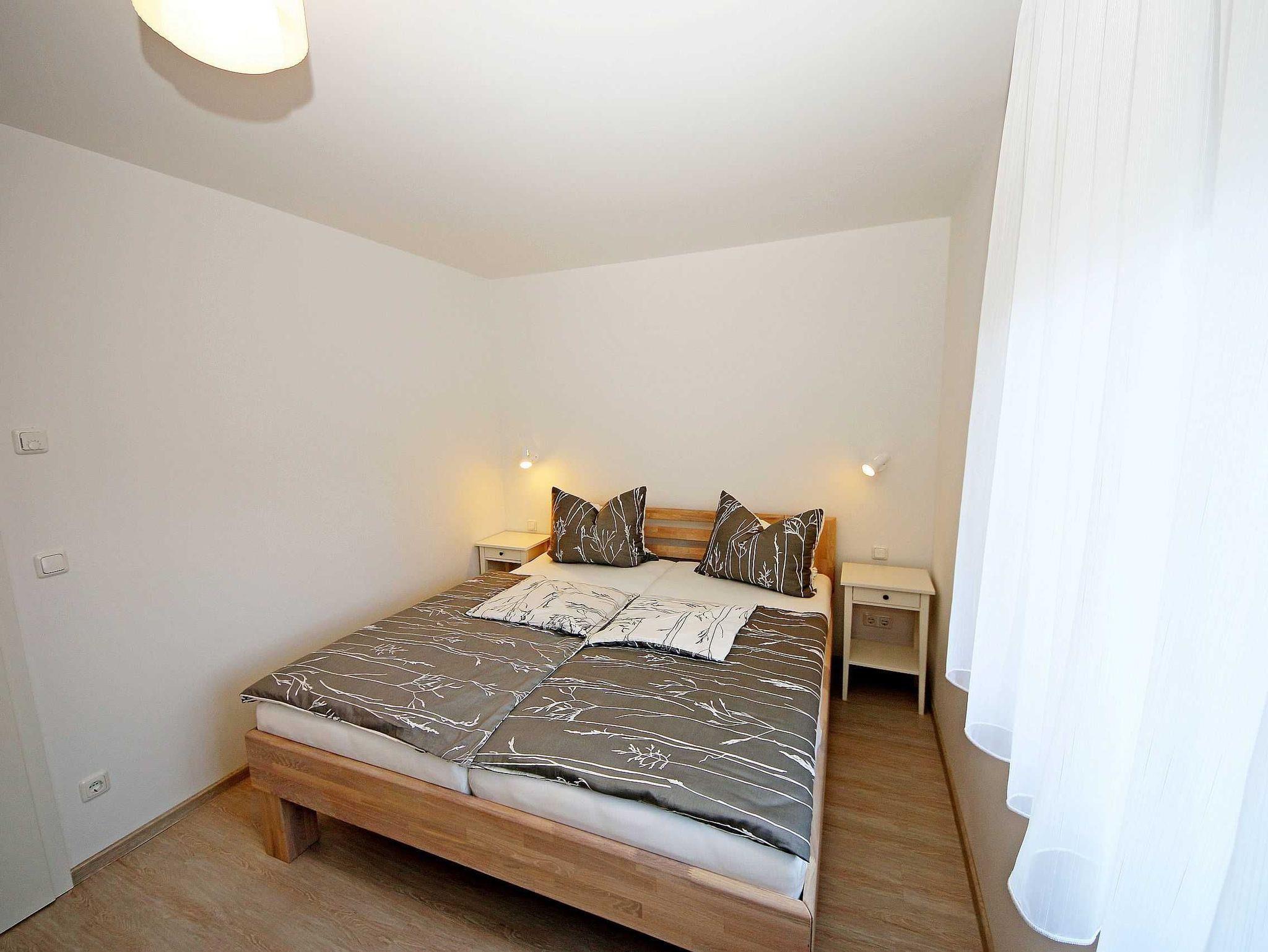 Die gebaute, modern eingerichtete Ferienwohnung hat eine Größe von ca. 65 qm und ist mit ausgewählten Stilelementen versehen. Sie bietet Platz für 2 bis 4 Erwachsene und 1 Kleinkind bis 3 Jahre im Kinderreisebett. Die Allergikerfreundliche Nichtraucherwohnung befindet sich im Obergeschoss. Zu der Wohnung gehört ein bestuhlter und mit Sonnenschirm versehener Balkon mit Blick in den Küstenwald. Ein Grillplatz befindet sich im Gartenbereich. Der Wohnbereich ist mit einer gemütlichen Eckcouch (Leder), Couchtisch; Leselampe sowie Sideboard ausgestattet. Zu den Unterhaltungsmöglichkeiten in den Abendstunden oder bei schlechtem Wetter gehören ein Smart-TV, Blu-Ray-Player sowie eine Hi-Fi Kompaktanlage mit CD- und USB-Anschluss. Auch auf einen Internetanschluss (WLAN) brauchen Sie nicht verzichten. Dieser ist inklusive. Ein Kaminofen für wohlige Wärme rundet die Gemütlichkeit ab. Kaminholz ist nicht inklusive. Die komplett ausgestattete Küchenzeile mit Ceranfeld, Backofen, Geschirrspüler, Kühlschrank mit Eisfach, Mikrowelle, Kaffeemaschine, Wasserkocher, Toaster, div. Küchenutensilien wird durch den Essplatz am Panoramafenster komplettiert. Eines der 2 Schlafräume ist mit einem Doppelbett (1,80m x 2,00m), Nachttischablagen und einem geräumigen Kleiderschrank ausgestattet. Das zweite Schlafzimmer hat zwei Einzelbetten (0,90m x 2,00m), Nachttischablagen und einen Kleiderschrank sowie einen LCD-TV. Die Schlafräume sind mit einem modernen Vinylbelag versehen und können für einen angenehmen Schlaf abgedunkelt werden, zudem sind sie mit Insektenschutzgitter versehen. In allen anderen Räumlichkeiten sind Fliesen verlegt worden. Für eine angenehme Wärme sorgt die im ganzen Haus verlegte Fußbodenheizung. Das Tageslichtbad wird durch eine flache Duschwanne, einen Waschtisch, ein WC, Fön und einem beheizten Handtuchhalter abgerundet. Das Gäste-WC wurde zusätzlich mit einem beheizten Handtuchtrockner ausgestattet. Für unsere kleinen Gäste ist 1x Hochstuhl inklusive. Haustiere sind nicht erlaubt. Ein PKW-Stellplatz befindet sich auf dem Grundstück. Mitgebrachte oder geliehene Fahrräder können Sie im hauseigenen Abstellraum unterbringen. Die Erstausstattung eines Wäschepaketes (komplette Bettwäsche, 1 Duschhandtuch, 1 kleines Handtuch) können Sie bis 14 Tage vor Anreise gegen einen Aufpreis dazu buchen oder durch eigene ergänzen. Ab 2 gebuchten Paketen erhalten Sie einmalig 1 Geschirrhandtuch und 1 Duschvorleger hinzu.