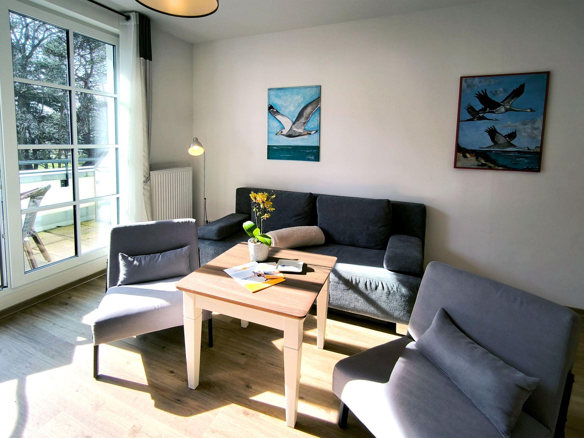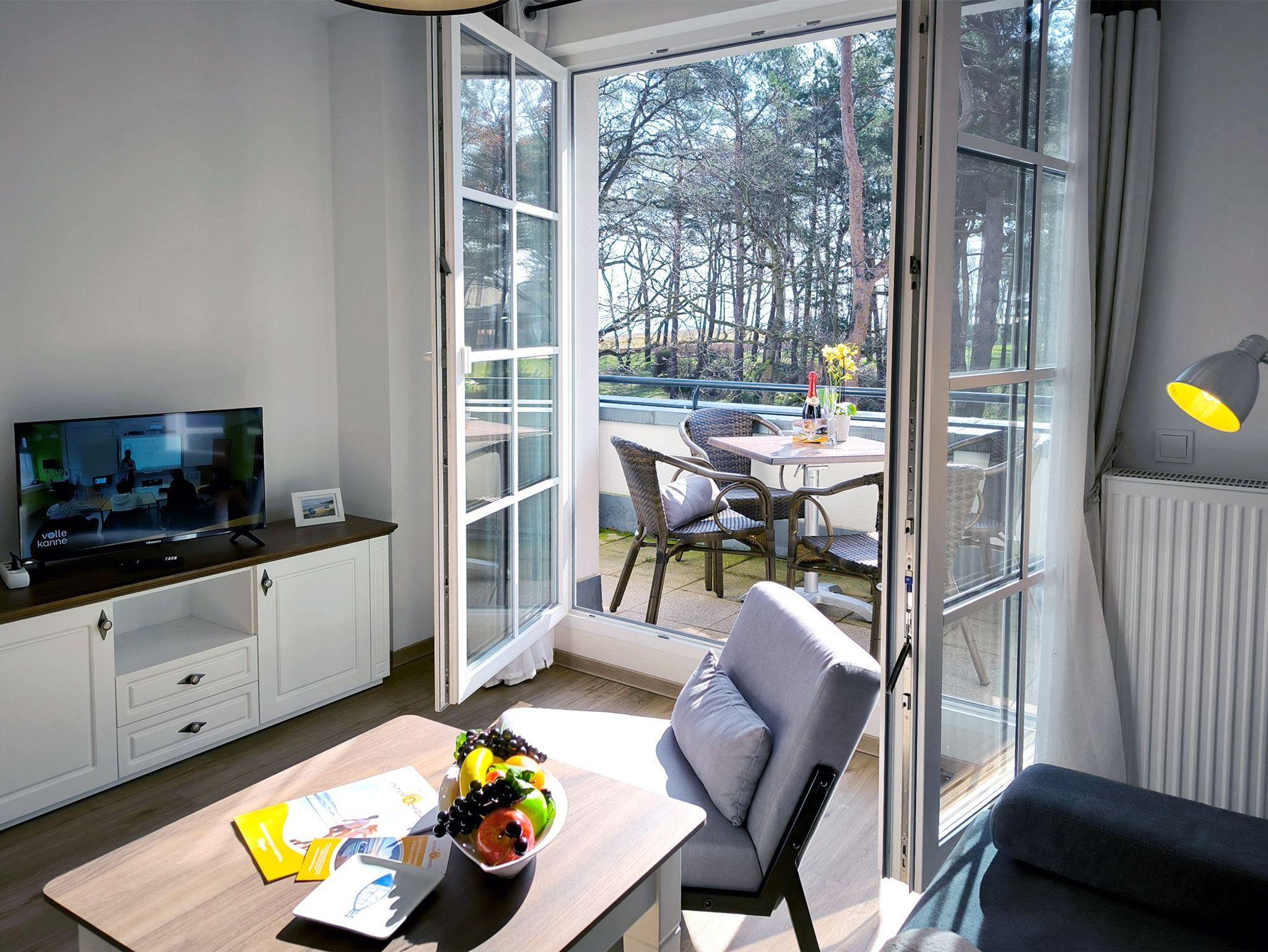 Moderne Ferienwohnung in Baabe mit Meerblick, Balkon und direktem Strandzugang.
