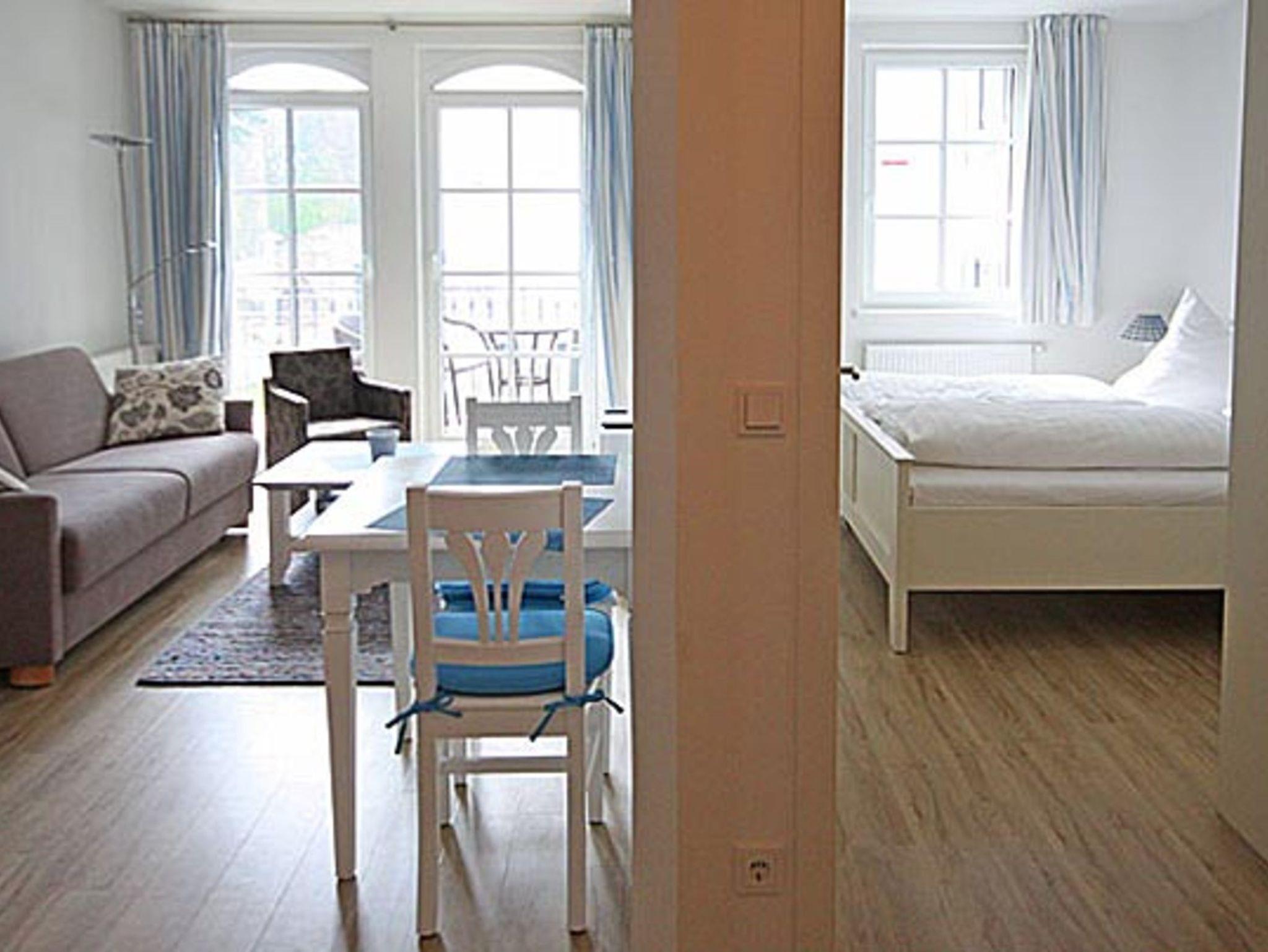 Die Ferienwohnung Seepferdchen ist ca. 38,5m² groß und hat ein schönes Wohn/Esszimmer mit einem Schlafsofa für 1-2 Personen und verfügt natürlich über Fernseher, Radio und CD-Player sowie ein separates Schlafzimmer, ebenfalls mit einem Fernseher. WLAN inklusive steht Ihnen kostenfrei zur Verfügung. Der möblierte Balkon liegt ruhig nach Süd-Westen zum Innenhof dieser wunderschönen Anlage. Die gut ausgestattete Küche ist integriert in den Wohn/Essraum und bietet einen 4 Platten-Ceranherd mit Backofen und eine Geschirrspülmaschine.