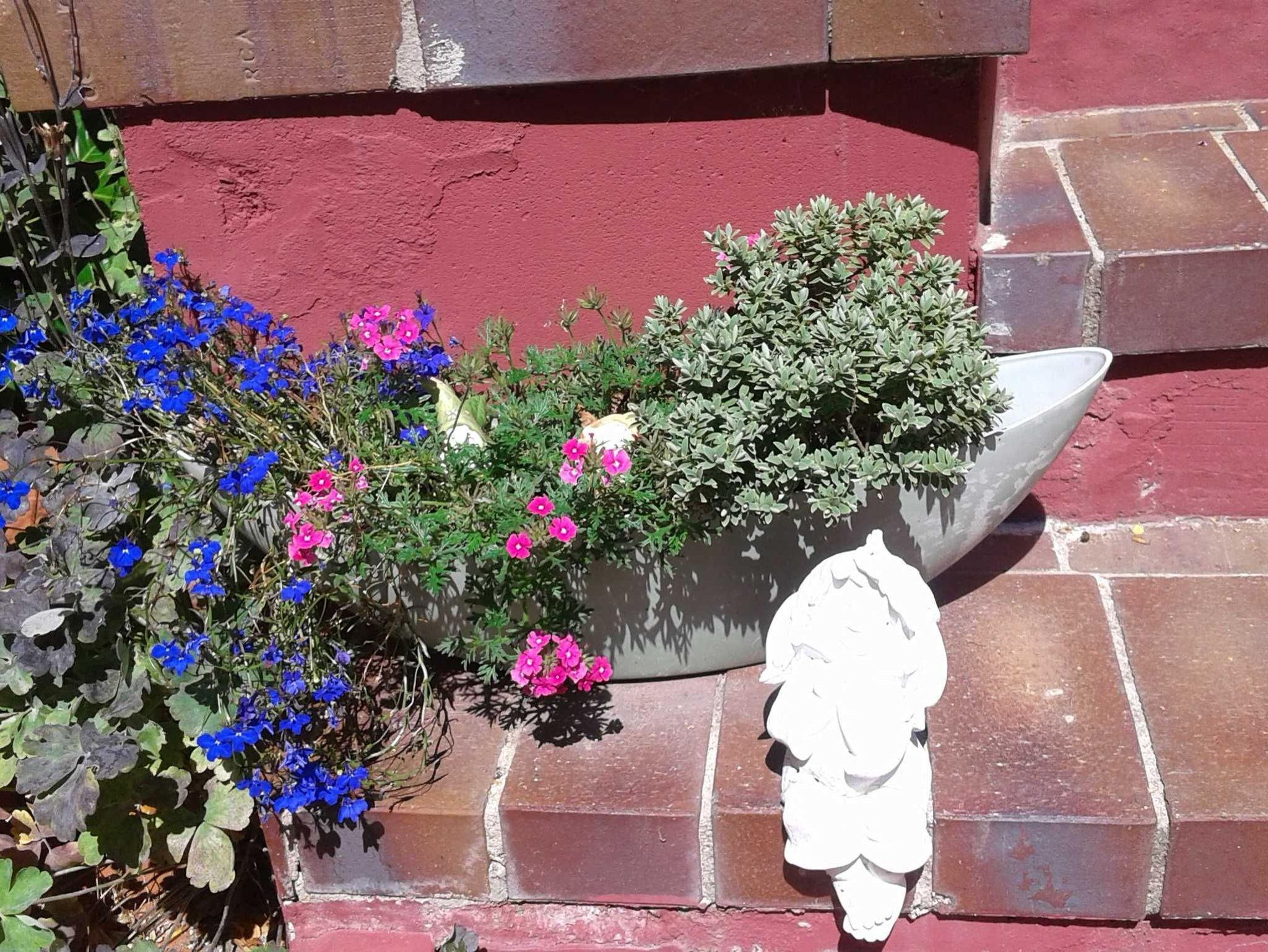 Im Haupthaus des Vermieters mit separatem Eingang. Es ist eine helle Souterrain- Wohnung mit großen Fenstern.