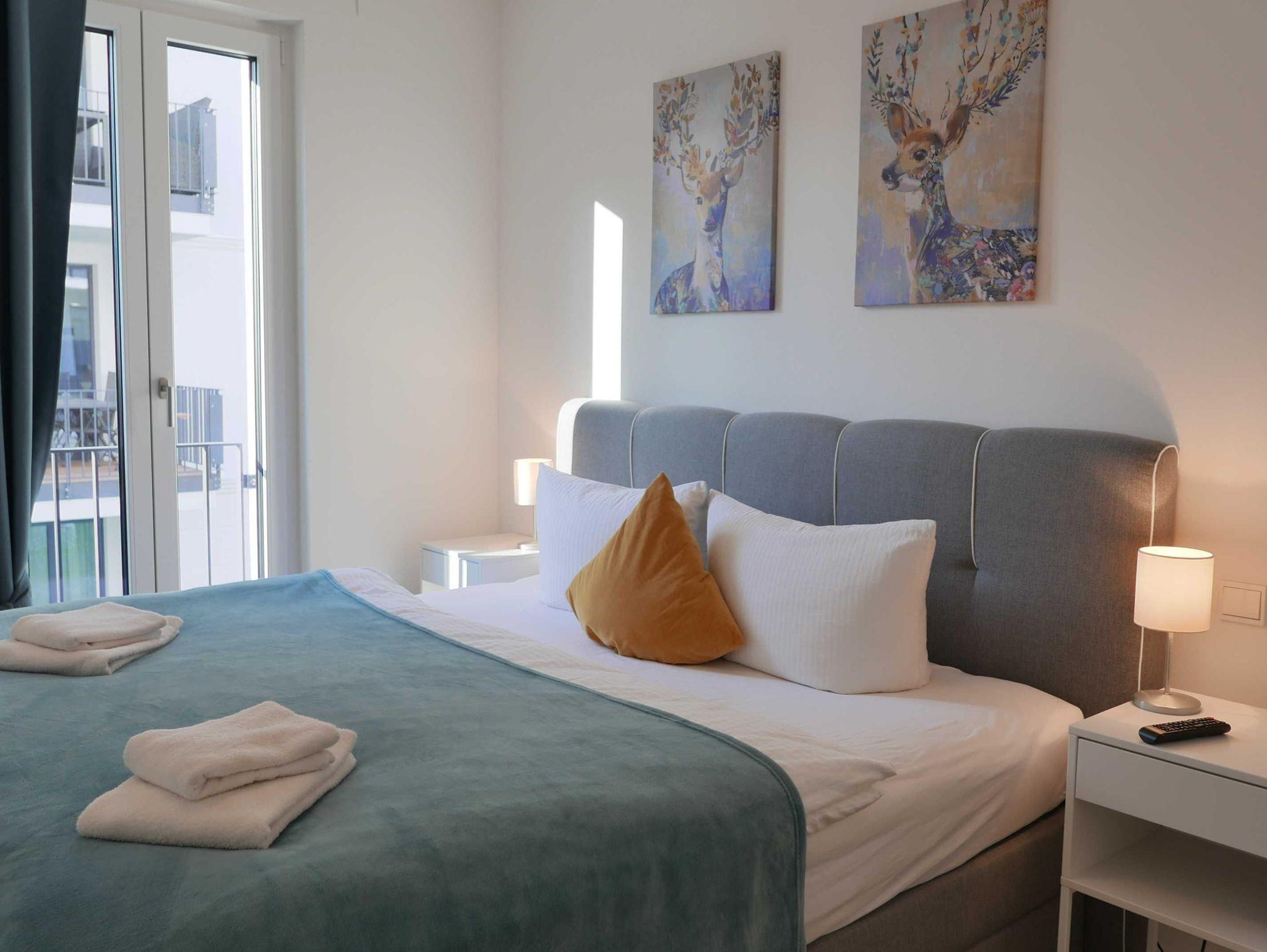 Das Schlafzimmer verfügt über ein Boxspringbett mit den Maßen 180 x 200 cm, sowie ein SMART-TV und ausreichend Stauplatz.