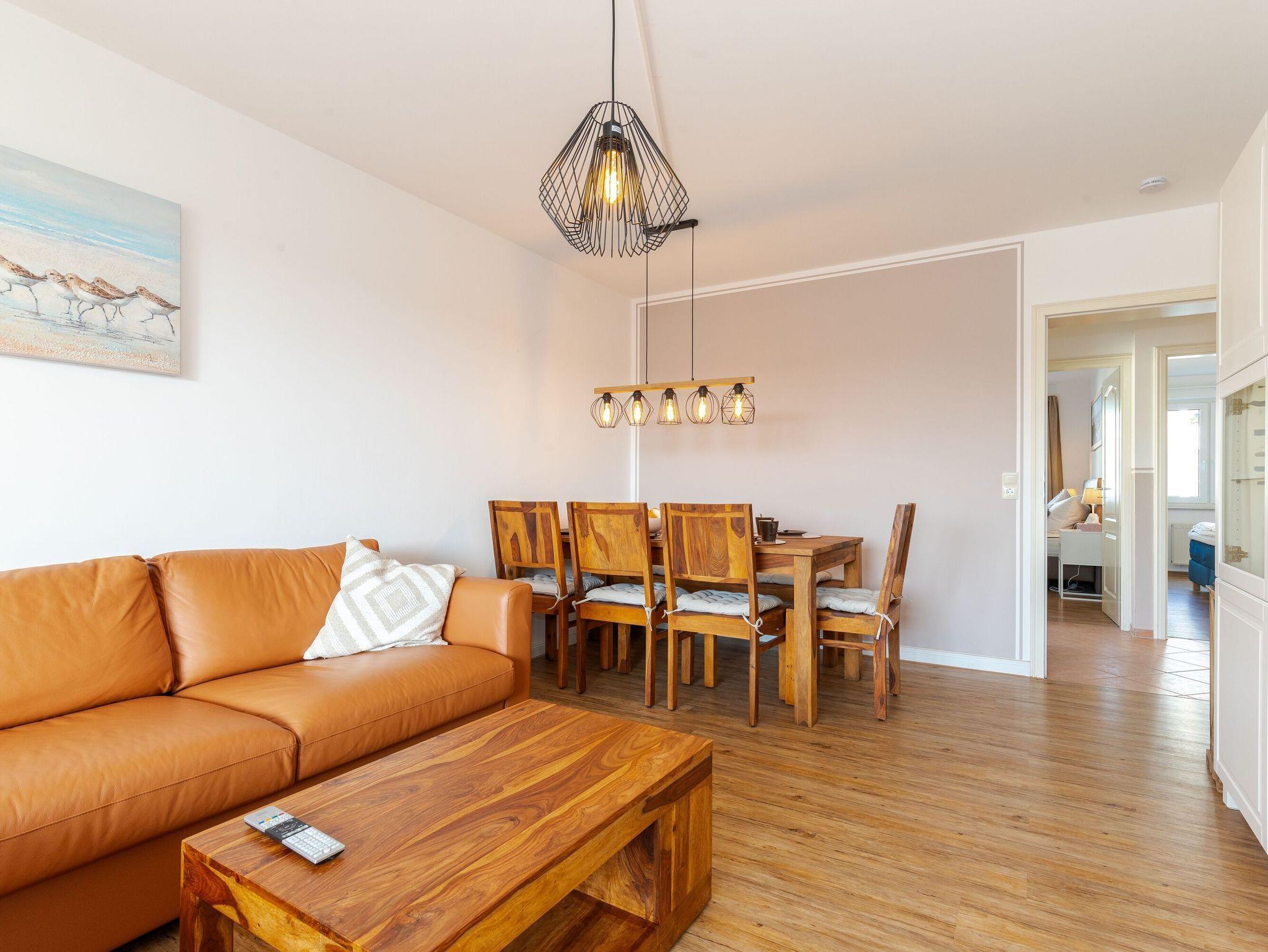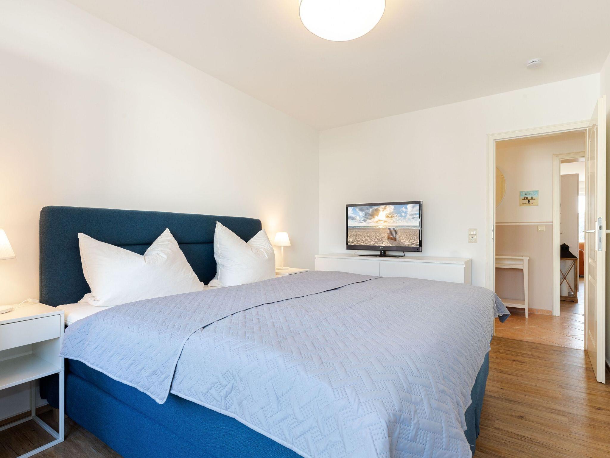 In der Küche bieten Herd mit Cerankochfeld, Backofen und Kühlschrank Gelegenheit zum kochen. Das Wohnzimmer lädt zum verweilen ein. Dort befindet sich eine Schlafcouch, ein Flachbild TV und eine Stereoanlage. Nach einem ausgiebigen Tag am Strand kann man sich in der ebenerdigen Dusche im Badezimmer frisch machen. Im Boxspringbett im Schlafzimmer kann man es sich, dank Leselampe, mit einem Buch gemütlich machen, oder einfach Fernsehen schauen. Der Kleiderschrank bietet Platz, um seine Sachen zu verstauen. Im zweiten Schlafzimmer befindet sich ebenso ein Doppel Boxspringbett mit TV und Kleiderschrank. In beiden Schlafräumen gibt es Verdunklungsmöglichkeiten.