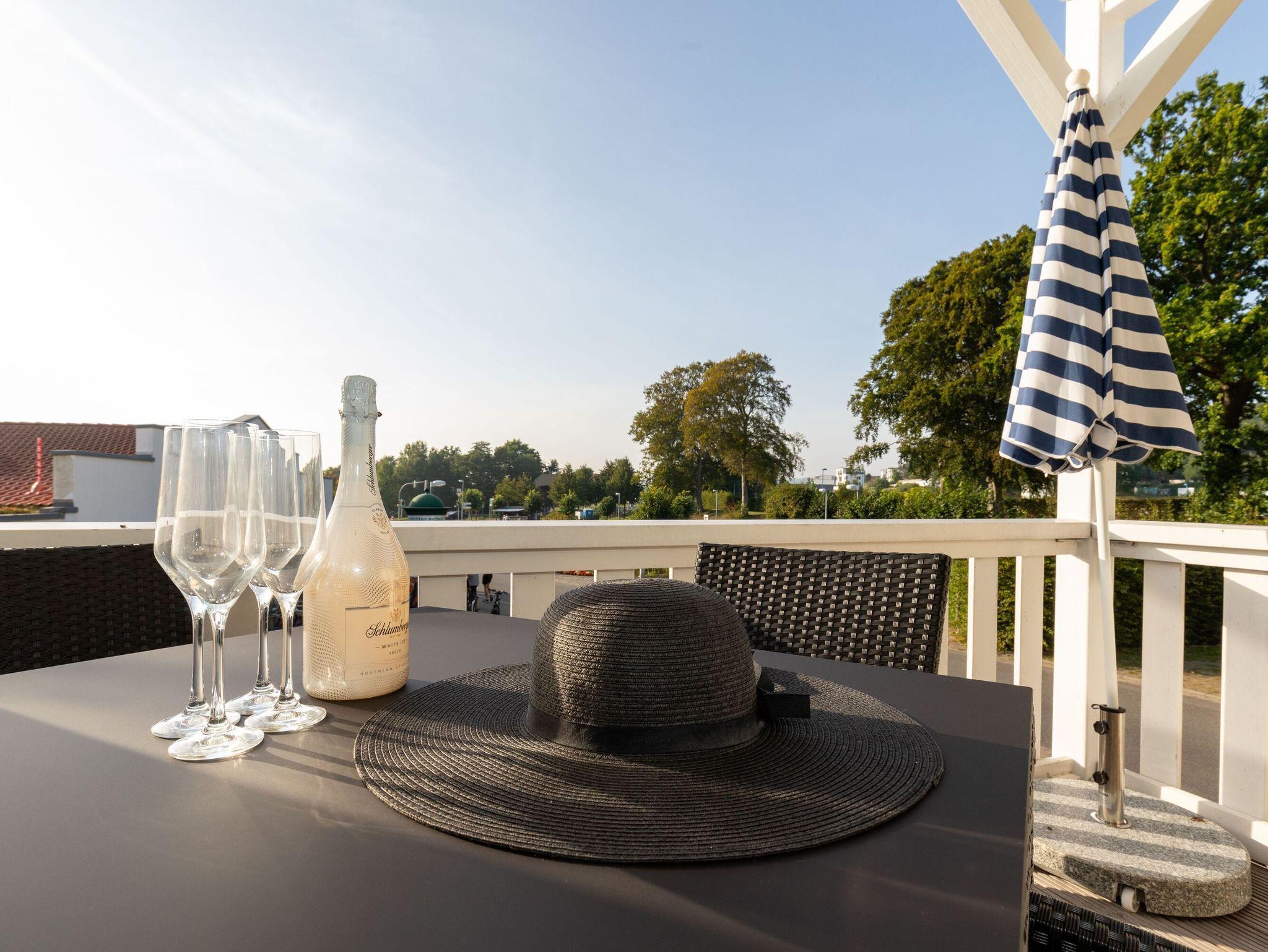 Auf dem Balkon kann man relaxen und die Ostseeluft genießen.