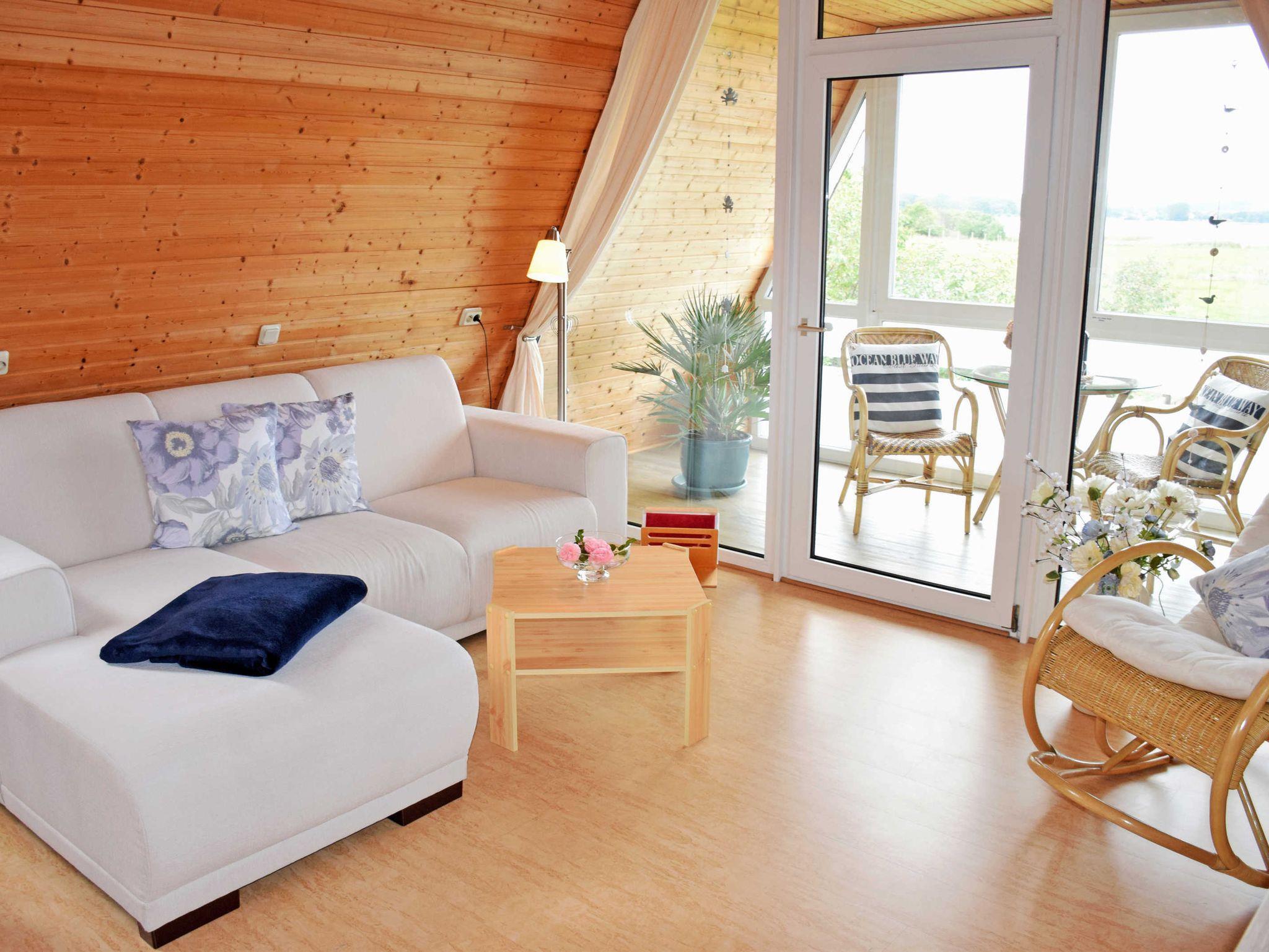 Modern eingerichtete Ferienwohnung mit Seeblick auf den Selliner See im Ostseebad Baabe, nur 700 m vom Strand entfernt.