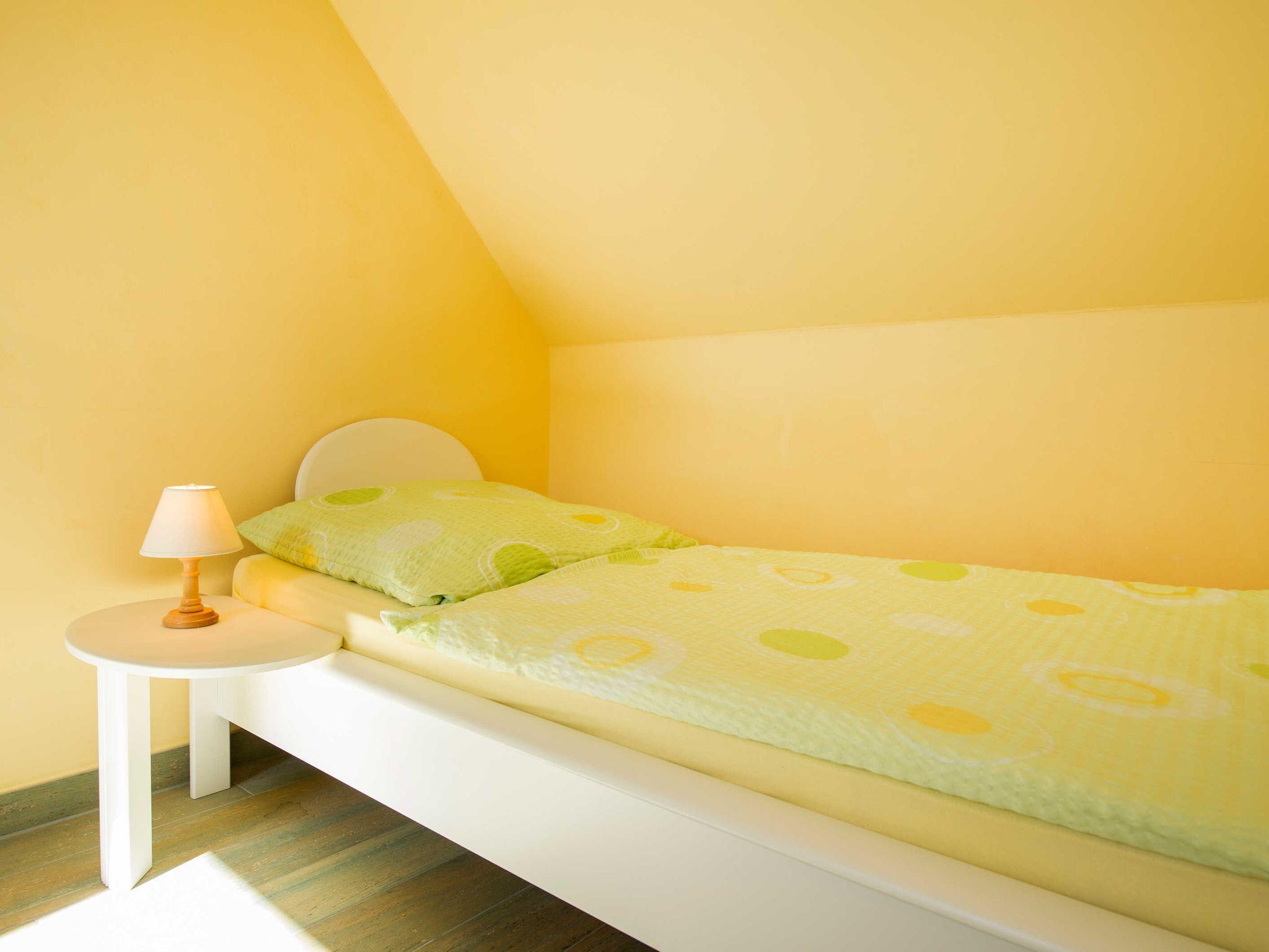 Über eine Treppe gelangt man in das Obergeschoss, in dem sich die beiden Schlafzimmer befinden. Das 1. Schlafzimmer bietet ein bequemes Doppelbett mit Nachttisch und Leselampen und einen Kleiderschrank. Das 2. Schlafzimmer ist mit einem Einzeletten, Nachttisch und Leselampe sowie Kleiderschrank ausgestattet.