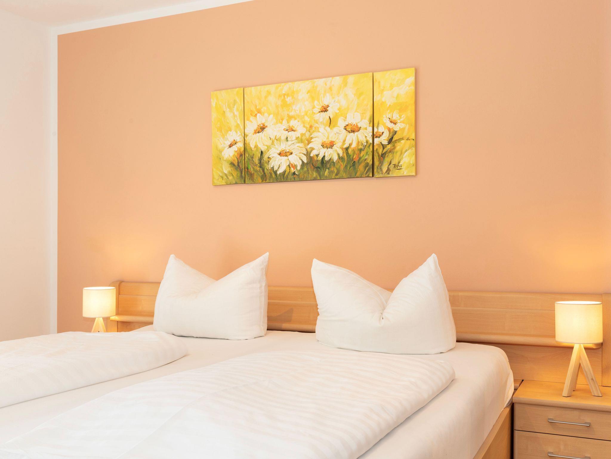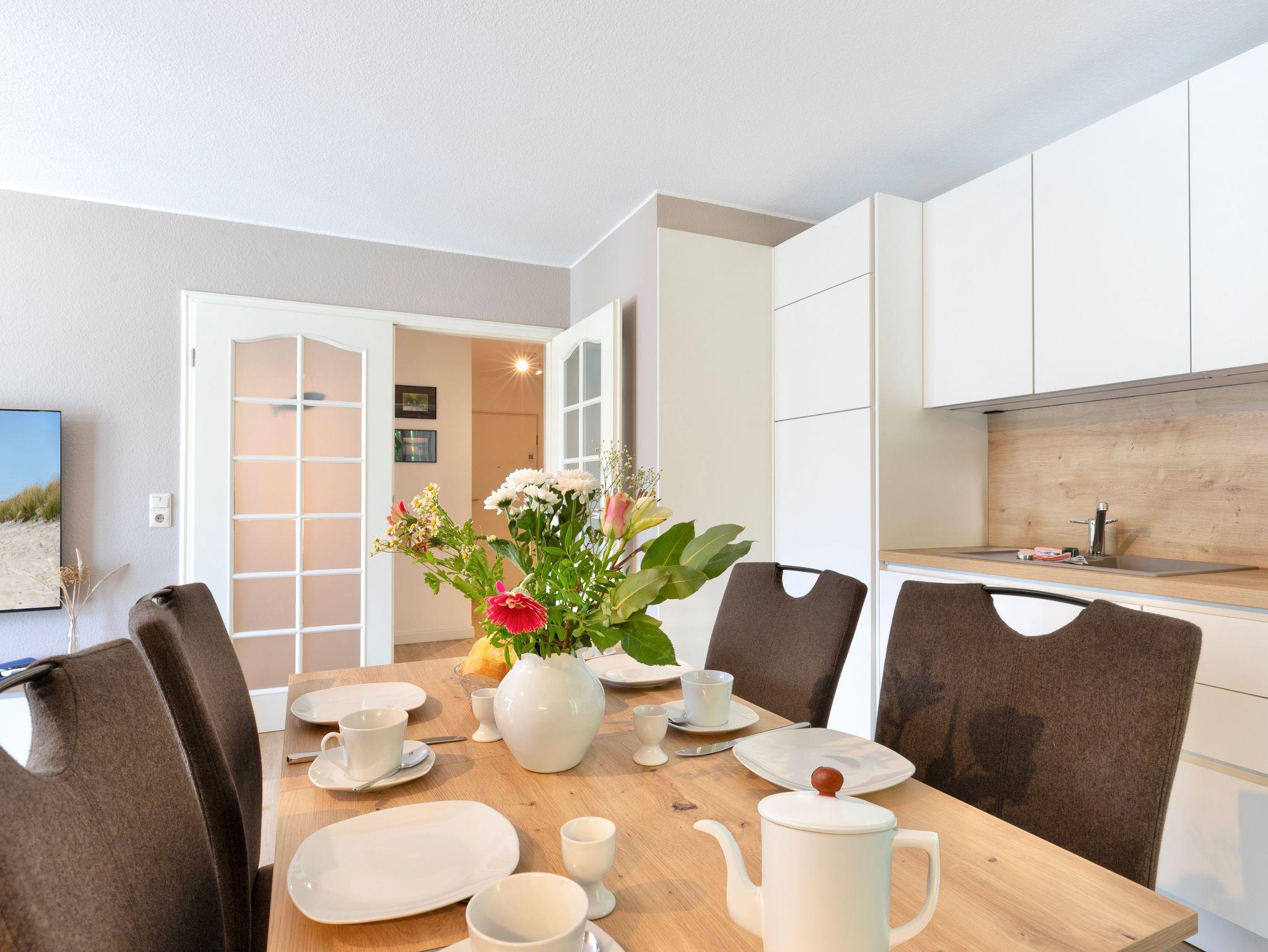 Ihre Nichtraucherferienwohnung ist mit viel Liebe zum Detail ausgestattet und eingerichtet worden. Sie wohnen in einer ca. 47 m² 2-Zimmer Wohnung + 27 m² für beide Balkone, die ideal für 2 Personen bzw. eine 3. Person auf der Schlafcouch ausgelegt ist. Die Wohnung befindet sich in der 1. Etage und ist per Fahrstuhl bequem zu erreichen. In der Wohnung finden Sie einen kombinierten Wohn/Koch- und Essbereich. Die integrierte Küchenzeile lässt mit einer Mikrowelle, Backofen, Ceranfeld, Spülmaschine, Kühlschrank mit Gefrierfach, Wasserkocher, Toaster, Kaffeemaschine, Senseo Padmaschine und anderen praktischen Helfern keine kulinarischen Wünsche offen. Im Wohnbereich sind weiterhin ein Esstisch, eine gemütliche Couch (Schlafmöglichkeit 3. Person/ 1,20m x 1,90m) vorhanden. Abgerundet wird der Wohnbereich mit einem Smart-TV, DAB-Radio, DVD-Player und einer Musikanlage. Ein WLAN-Zugang steht Ihnen inklusive zur Verfügung. Der Ostbalkon ist vom Wohn/Essbereich, sowie der Südbalkon vom Wohnbereich und vom Schlafzimmer begehbar. Um Sie vor Mücken zu schützen, sind die Balkontüren des Ostbalkons, sowie des Südbalkons vom Schlafzimmer mit einer Insektenschutztür versehen. Das Schlafzimmer ist mit einem Doppelbett (1,80m x 2,00m), Nachttischkonsolen, Flachbild-TV, Radio und einem Kleiderschrank ausgestattet. Insektenschutzgitter sorgen für einen ruhigen Schlaf. Das Bad verfügt über eine Dusche mit flachem Einstieg, Waschbecken, Kosmetikspiegel, Fön und WC. Ein Bügelbrett, ein Bügeleisen sowie Reinigungsutensilien stehen Ihnen zusätzlich zur Verfügung. Ein eigener PKW-Stellplatz (Nr. 10, Einfahrtshöhe 1,90m) befindet sich in der Tiefgarage des Hauses. Ihre Fahrräder können Sie im eigenen abschließbaren Keller abstellen. 2 Fahrräder stehen Ihnen zur Nutzung zur Verfügung, sind aber nicht Bestandteil der Buchung, da durch höhere Gewalt nicht immer die Nutzung garantiert werden kann. Haustiere sind nicht erlaubt. Die Erstausstattung eines Wäschepaketes (komplette Bettwäsche, 1 Duschhandtuch, 1 kleines Handtuch) können Sie bis 14 Tage vor Anreise gegen einen Aufpreis dazu buchen oder durch eigene ergänzen. Ab 2 gebuchten Paketen erhalten Sie einmalig 1 Geschirrhandtuch und 1 Duschvorleger hinzu.