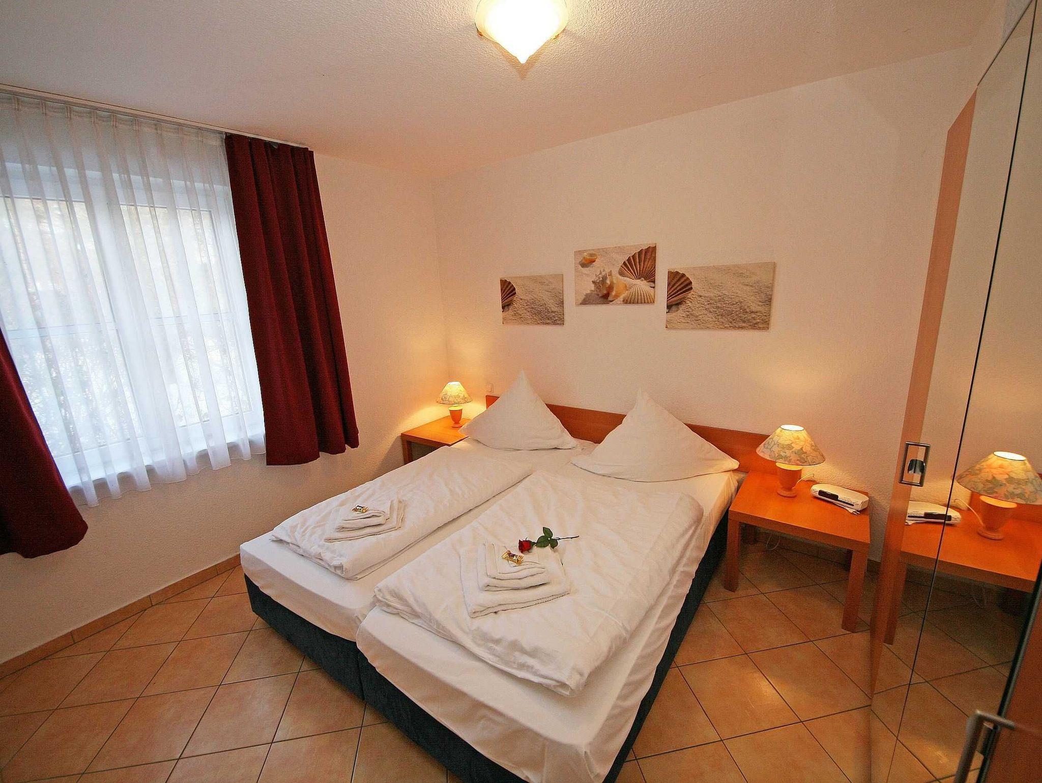 Die gemütliche und komfortable 3-Raum-Nichtraucherwohnung mit ca. 55qm Wohnfläche befindet sich im Erdgeschoss und bietet ausreichend Platz für 2 Erw. + 2 Kinder bis 17 Jahre. Die im Rügener Stil behaglich eingerichtete Ferienwohnung bietet einen großzügigen Wohn- Essbereich mit Zugang auf die teilweise überdachte Terrasse. Die kleine aber komplett eingerichtete Küchenzeile mit Geschirrspüler, Backofen, 4 Herdplatten, Kaffeemaschine, Toaster, Wasserkocher sowie diverse Küchenutensilien lassen keine Wünsche offen und grenzen an den Wohnbereich. Im Wohn- Essbereich erwartet Sie ein Esstisch mit 4 Stühlen, eine gemütliche Couch mit einem Sideboard sowie einen LCD Sat-TV in HD-Qualität für eine hohe Programmvielfalt, CD und DVD-Player sowie ein Radio mit USB-Anschluss und SD-Kartenleser. Vom Wohnbereich aus gelangen Sie auf die teilweise überdachte, im Bäderstil gehaltene und bestuhlte Terrasse (Richtung Süden) mit 2 zusätzlichen Sonnenliegen. Das 1. Schlafzimmer verfügt über 1 Doppelbett (2x90x200cm) mit Nachtischkonsolen und einen viertürigen Kleiderschrank. Das Aufstellen eines Kinderreisebettes wäre hier möglich. Das 2. und damit kleinere Schlafzimmer ist mit 2 Einzelbetten (je 80x200cm), und Nachttischablagen ausgestattet. Beide Schlafzimmer sind abdunkelbar. Das geflieste Tageslicht-Bad bietet Ihnen eine Dusche, WC, Fön und einen Waschtisch. Auch im Urlaub brauchen Sie in der Wohnung nicht auf einen Internetanschluss (WLAN) verzichten. Dieser ist für Sie inklusive!!! In einem Gemeinschaftsraum können Sie eine Waschmaschine gegen eine Extragebühr nutzen (in den Monaten: November bis Ende März nicht im Betrieb). Ein Parkplatz Nr. 01 befindet sich vor dem Haus Rügenwelle und ist für Sie inklusive. Ihre mitgebrachten oder geliehenen Fahrräder können Sie auf dem Grundstück anschließen. Auf Wunsch kann auch 1x Kinderreisebett (mit Matratze, ohne Bett Inlett) / 1x Hochstuhl gestellt werden. 2 kleine Haustiere können gegen eine Gebühr dazu gebucht werden. Die Erstausstattung eines Wäschepaketes (komplette Bettwäsche, 1 Duschhandtuch, 2 kleine Handtücher) können Sie bis 14 Tage vor Anreise gegen einen Aufpreis dazu buchen oder durch eigene ergänzen. Ab 2 gebuchten Paketen erhalten Sie einmalig 1 Geschirrhandtuch und 1 Duschvorleger hinzu.