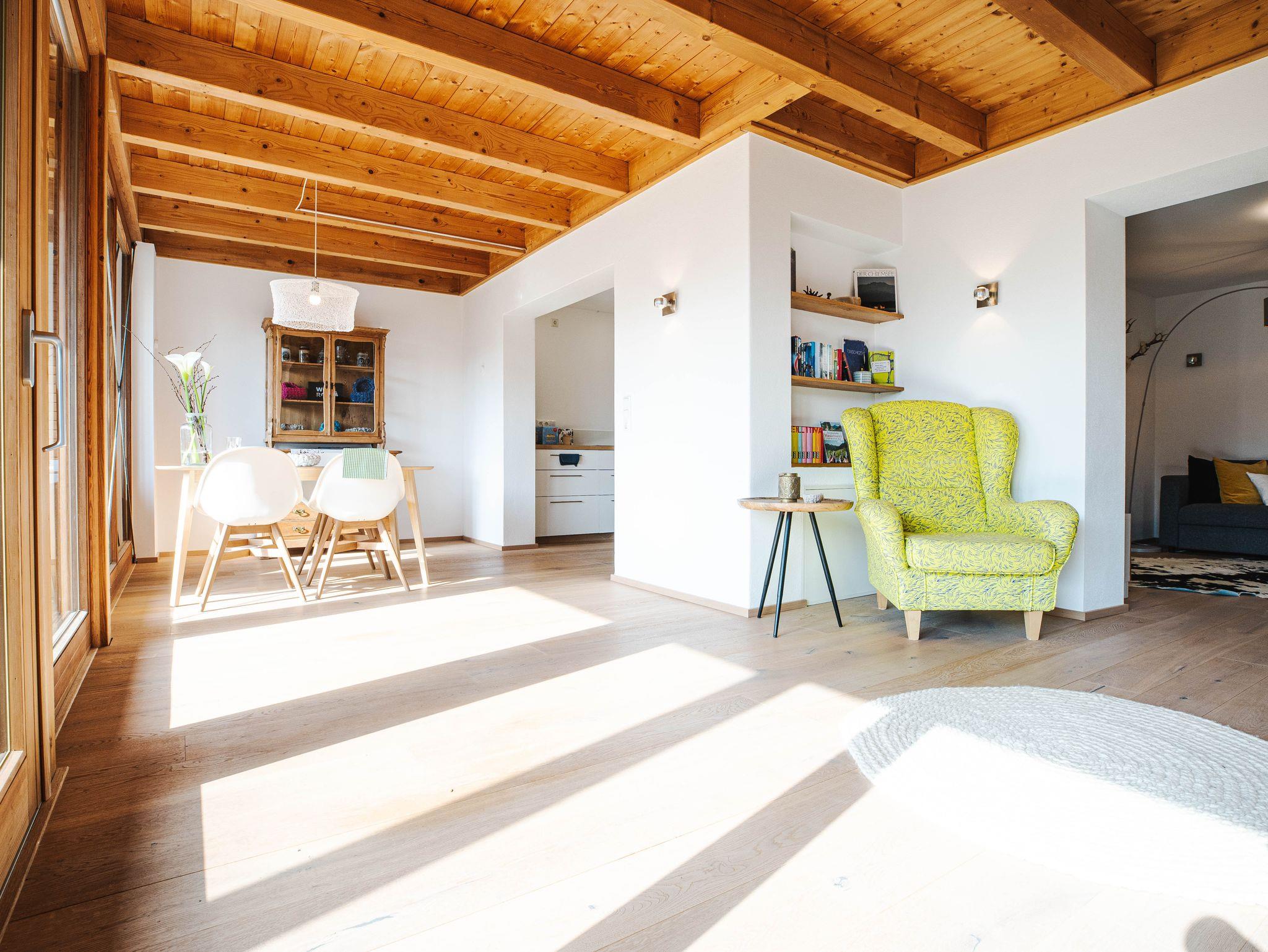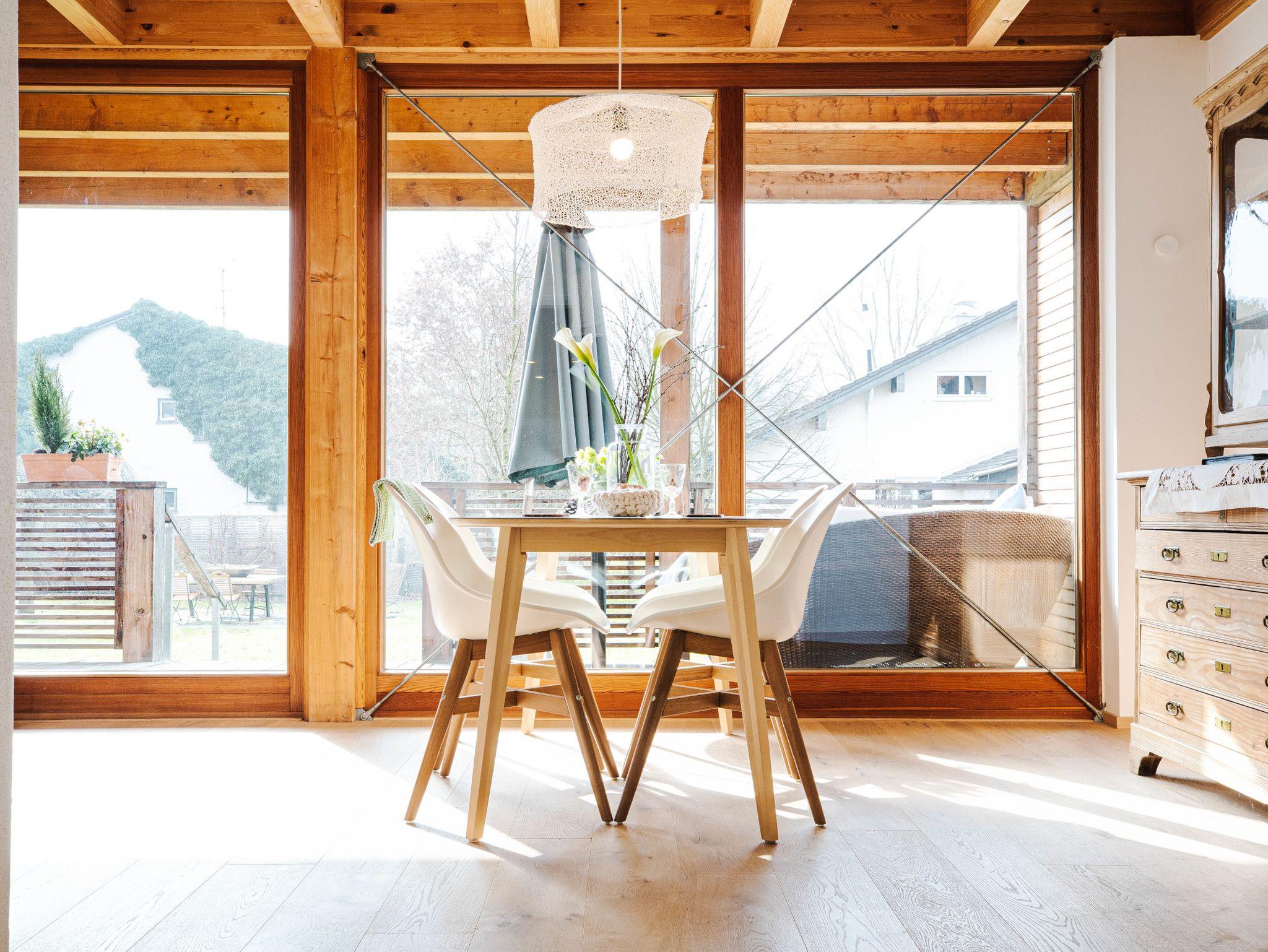 Naturhaus Luminus - Ihre Rückzugsoase für Ruhe, Entspannung und gesunde Ferien - begrüßt Sie in Bad Aibling. Die 5 Sterne Ferienwohnung (120qm), mit großer überdachter Südterasse und weitläufigem Garten, befindet sich in einer ruhigen Wohngegend, direkt am Mangfalldamm gelegen. Die Ferienwohnung aus Holz, Stein und Glas ermöglicht Licht, Luft und entspannte Atmosphäre. Die Südterrasse ist zu einem großen Garten hin geöffnet. Auch bei kaltem Wetter sitzt man gemütlich am Kachelofen und lässt sich vom Blick in den Naturgarten inspirieren. Ein idealer Rückzugsort um dem Alltag zu entfliehen. Die Therme Bad Aibling, Freischwimmbäder, Kino, Spielplätze sowie der idyllische Ortskern mit einladenden Cafe`s und Restaurant`s, sind fußläufig in wenigen Minuten zu erreichen. Sie verfügen über einen privaten PKW Stellplatz an der Unterkunft. Nahe Spazier- und Radwege an der Mangfall bieten Ihnen Sportaktivitäten und Erholung in der Natur. Für Golffreunde bietet sich die 18-Lochanlage im Golfclub Schloß Maxlrain an. Zudem bieten wir den perfekten Ausgangspunkt für Ausflüge in die Metropolregion München, den Chiemsee, nach Salzburg oder Tirol sowie ins nahegelegene Alpenvorland mit seinen einfachen bis anspruchsvollen Bergtouren. In der direkten Umgebung finden Sie ein hochwertiges Angebot von privaten Kliniken, Wellness- und Gesundheitsprogrammen.