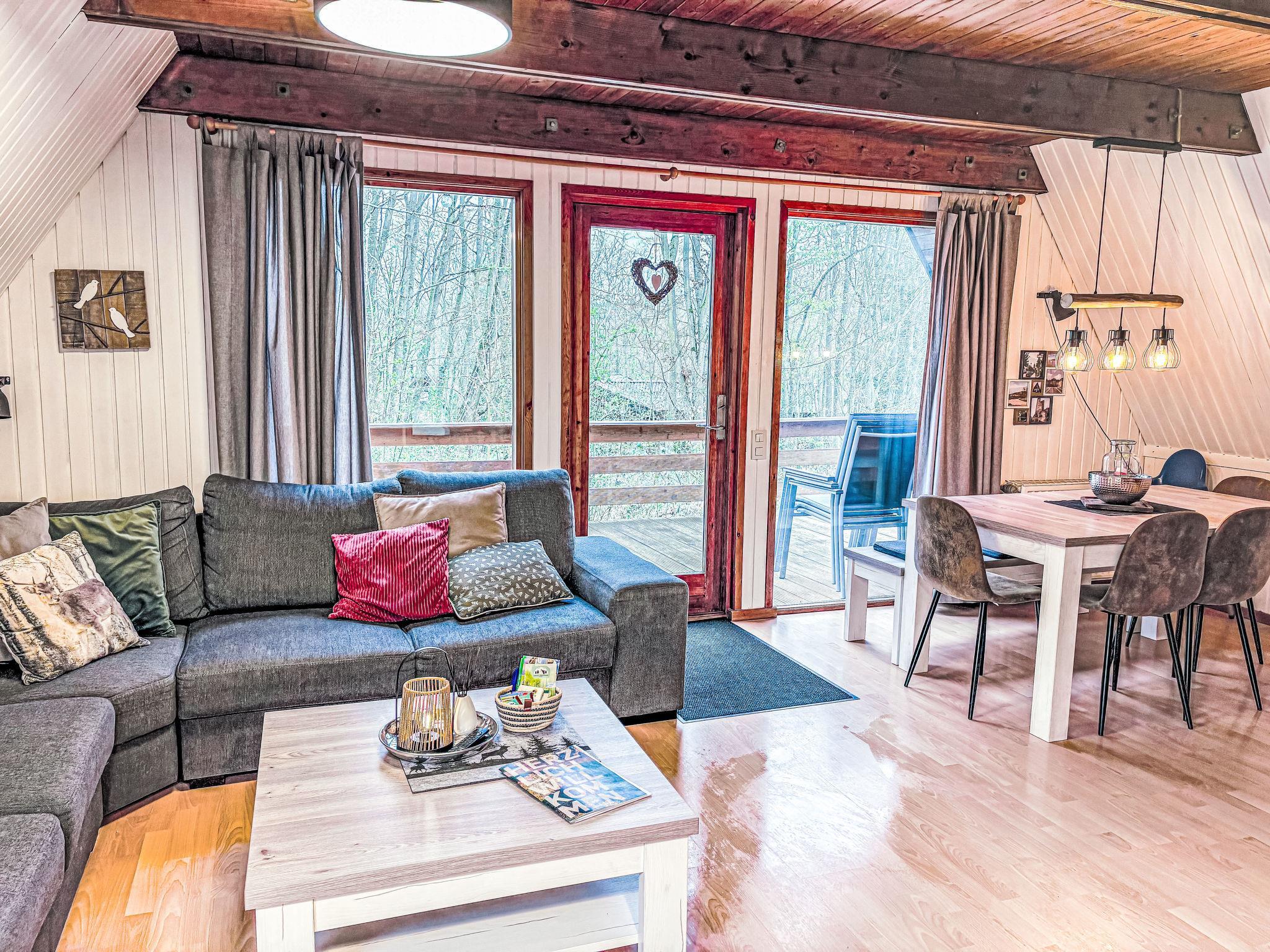 Ferienpark Twistesee 4 km von Bad Arolsen: Gemütliches Holzhaus "Waldrauschen". 100 Häuser im Ferienresort. Im Ortsteil Wetterburg, 400 m vom See, im Wald. Zur Mitbenutzung: Grundstück 33 ha, Bäumen, Wiese. Kinderspielplatz. Zentralparkplätze. E-Ladestation. Supermarkt 4 km, Restaurant 800 m, Bushaltestelle 4 km, Bahnstation 4 km, Sandstrand 300 m, Freibad 4 km, Hallenbad 4 km. Minigolf, Angelmöglichkeit 300 m. Bitte beachten: autofreie Ferienanlage. Be- und Entladen am Ferienhaus möglich.