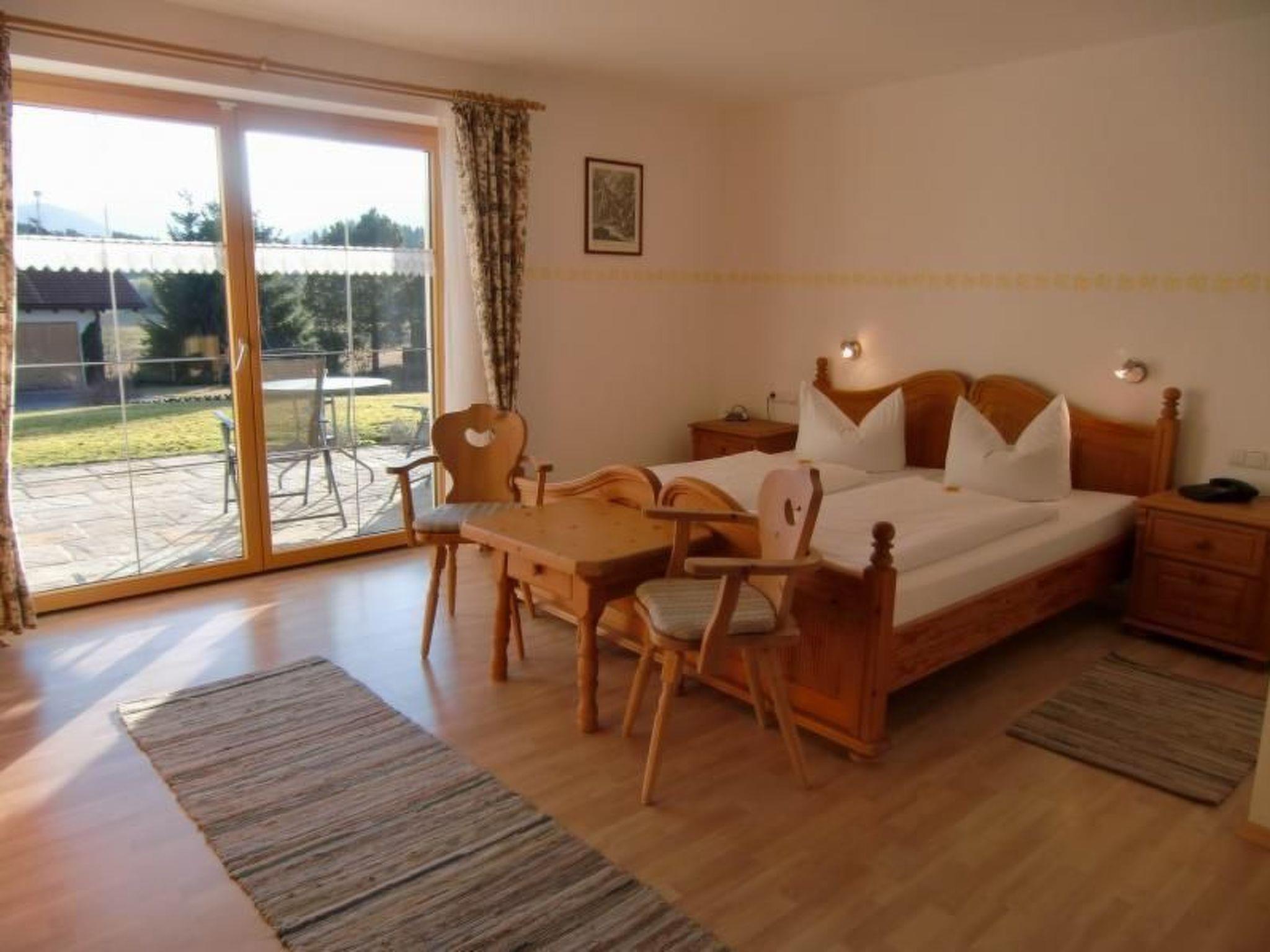 Unser neu renoviertes Haus liegt am ruhigen Ortsrand und bietet Ihnen eine großzügige Ferienwohnung mit Südterrasse und Blick in die Ammergauer Alpen. Die Ferienwohnung liegt im Erdgeschoss und besitzt einen separaten Eingang. Die FeWo hat ein Größe von ca 46 m² und ist aufgeteilt in Küche, Wohnzimmer mit Couch (=3. Bett), Schlafzimmer und Dusche/WC. Die Couch im Wohnzimmer ist als Sitz- und Liegegelegenheit gedacht, kann aber auch als 3. Bett benützt werden. In der Wohnung ist auch ein bequemer Sessel und zwei bequeme Stühle mit Lehnen. Die separate Küche ist komfortabel eingerichtet. Zu den Accessoires zählen: Geschirrspüler, Herd, Backofen, Mikro, Kühlschrank mit Gefrierfach, Toaster, Wasserkocher, Eierkocher (Besteck sowie Geschirr und Töpfe sind vorhanden). Es stehen 2 (SAT-) Flachbild-TV mit HD und Sky, sowie Direktwahl Telefone (Im Preis inbegriffen sind Telefongebühren ins deutsche Festnetz) und High-Speed Internet (kostenfrei) für Sie bereit. Eine überdachte Südterrasse mit zwei angenehme Sonnenliegen und Gartenmöbeln ermöglichen runden die FeWo ab.