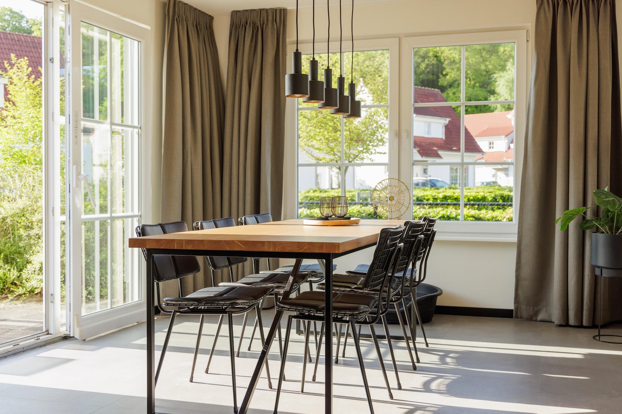 Dieses neu gestaltete, freistehende Ferienhaus befindet sich im großen Ferienpark Ferienresort Bad Bentheim. Es ist nicht weit von der niederländisch/deutschen Grenze entfernt, 20 km südlich von Nordhorn. Das Ferienhaus ist komplett und komfortabel eingerichtet und besteht aus zwei Etagen. Im Erdgeschoss finden Sie ein Wohnzimmer mit einem Fernseher mit Streaming-Funktionen. Auf diese Weise können Sie Apps von Ihrem Tablet oder Telefon über Ihre eigenen Konten auf den Fernseher streamen. Es gibt auch eine offene Küche, die mit einem Geschirrspüler und einer Kombi-Mikrowelle ausgestattet ist. Auf dem Flur befindet sich ein separates WC. Im ersten Stock befinden sich drei Schlafzimmer, eines davon mit Doppelbett und TV und zwei mit jeweils zwei Einzelbetten. Das Badezimmer ist mit Fußbodenheizung, Badewanne und ebenerdiger Dusche ausgestattet. Es gibt auch ein separates WC im Obergeschoss. Dieses Ferienhaus ist hundefreundlich. Es gibt einen Hundekorb (110 cm), eine Hundebox (122 x 74 x 81 cm) und einen Futternapf. Draußen gibt es einen schönen Garten mit Terrasse und Gartenmöbeln, darunter zwei Sonnenliegen. Es ist ein Abstellraum vorhanden. Am Ferienhaus steht Ihnen ein Parkplatz für ein Auto zur Verfügung. Im Ferienresort Bad Bentheim sind verschiedene Ferienhäuser und Villen für vier bis vierzehn Personen buchbar.