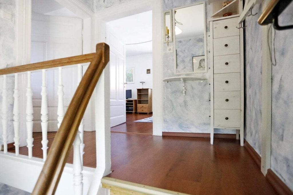 Besonders stilvolles Ferienhaus auf 2 Etagen mit herrlicher Aussicht von der Terrasse lädt Sie zur Erholung ein. In10 Minuten sind Sie in der Innenstadt und in 5 Minuten im Wald und auf den schönsten Wanderwegen, z.B. auf der Limburg! Sehr ruhige Lage, da kein Durchgangsverkehr. Das Wohnzimmer hat sowohl eine Sitzgruppe, als auch einen Eß-bzw. Spieltisch mit Stühlen + TV, DVD, CD; Radio, Spiele. Das Schlafzimmer hat ein Doppelbett, sowie eine Sitzecke mit mögl. Schlafsofa, Schrank, Kommoden etc+ TV+Safe Bad, Dusche, WC, Handtuchtrockner, viel Ablagen; Vollausgestattete Küche: Geschirrspüler, Mikrowelle, Espressomaschine; Drittes Zimmer: Bücher, W-Lan, Internet, Telefon, Zustellbett. Waschmaschine, Trockner, Bügeleisen etc Grill im Hof