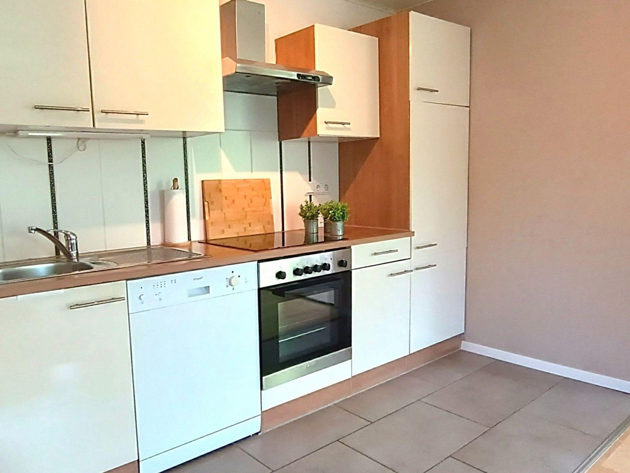 Einbauküche , Elektroherd , Spülmaschine , Kühlschrank mit Gefrierfach .
