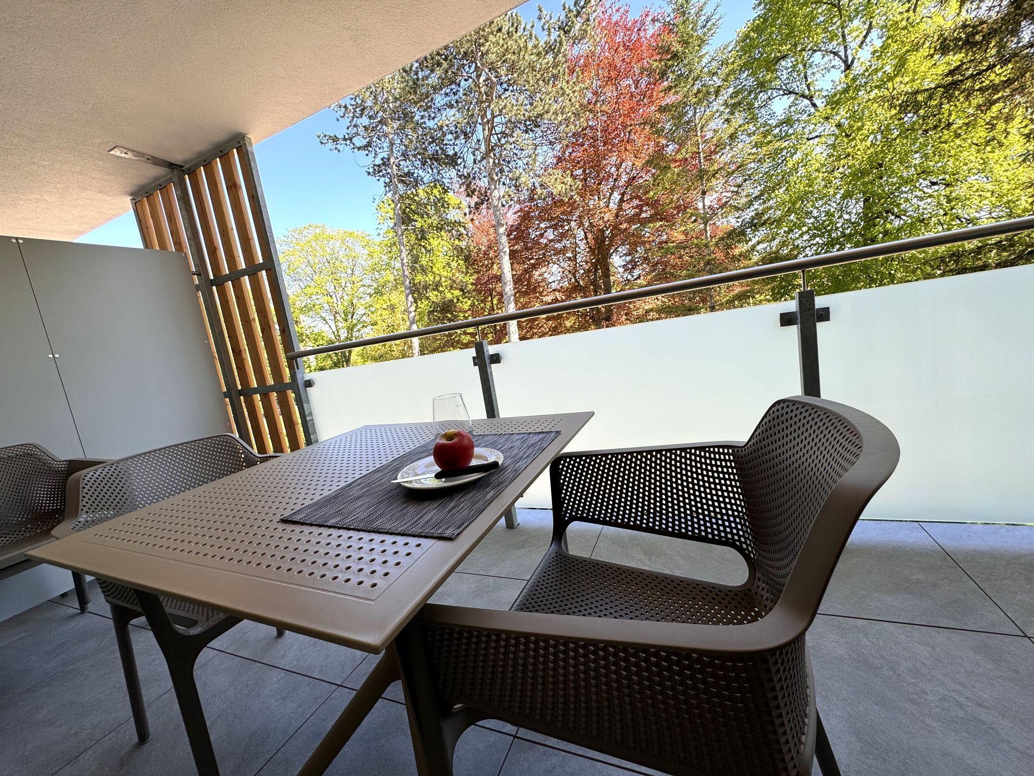 Kulinarische Freiheit: Die offene Küche mit zwei Barsitzplätzen lädt zum gemeinsamen Kochen und Verweilen ein. Genießen Sie hier die Möglichkeit, selbst köstliche Mahlzeiten zuzubereiten und den Tag entspannt zu beginnen oder ausklingen zu lassen. Der zugehörige Balkon eröffnet einen Blick ins Grüne und ist der ideale Ort, um die Seele baumeln zu lassen und die sonnige Atmosphäre von Bad Dürrheim zu genießen.