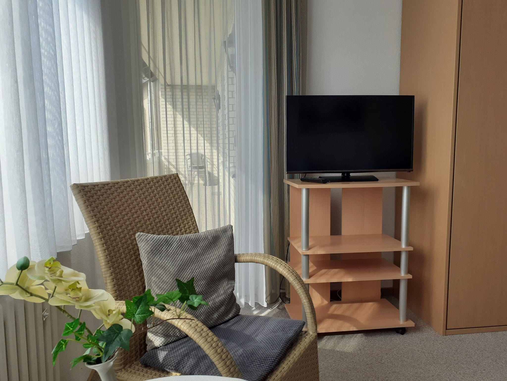 Die Ferienwohnung verfügt außerdem über Dusche/WC, Gäste-WC, Doppelzimmer mit Zugang zum Balkon, Einzelzimmer, SAT-TV im Wohnzimmer und Schlafzimmer und kostenloses W-LAN.