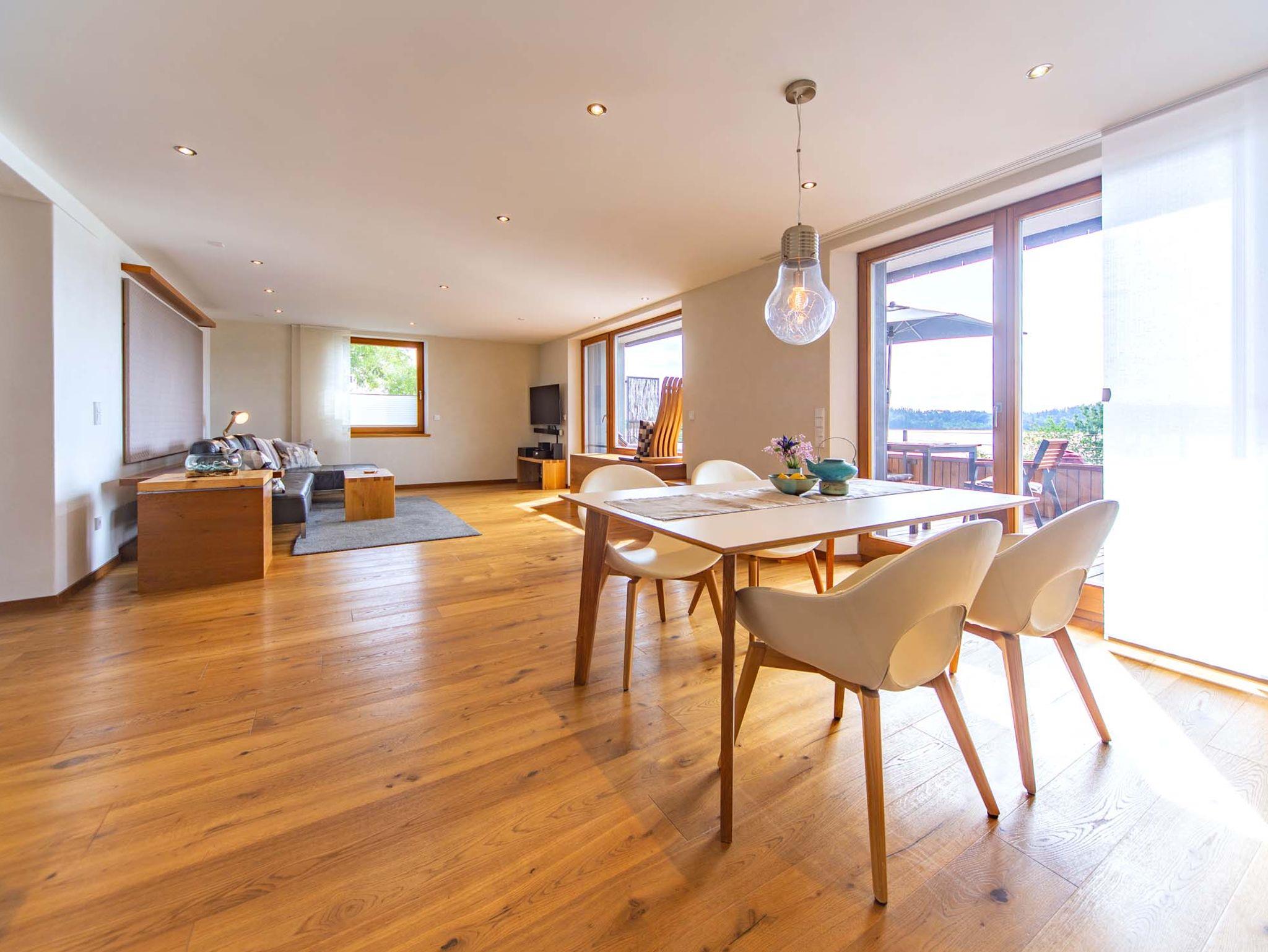 SEEN:sucht - Seeblick und Natur! Dieses äußerst großzügige, lichtdurchflutete Design-Appartement SEEN:sucht mit offenem Wohnbereich, zwei Schlafzimmern und einem Badezimmer ist sehr modern und hell gestaltet. Die Ferienwohnung verfügt über einen schönen Holzbalkon und eine private Außen-Seeblick-Sauna.