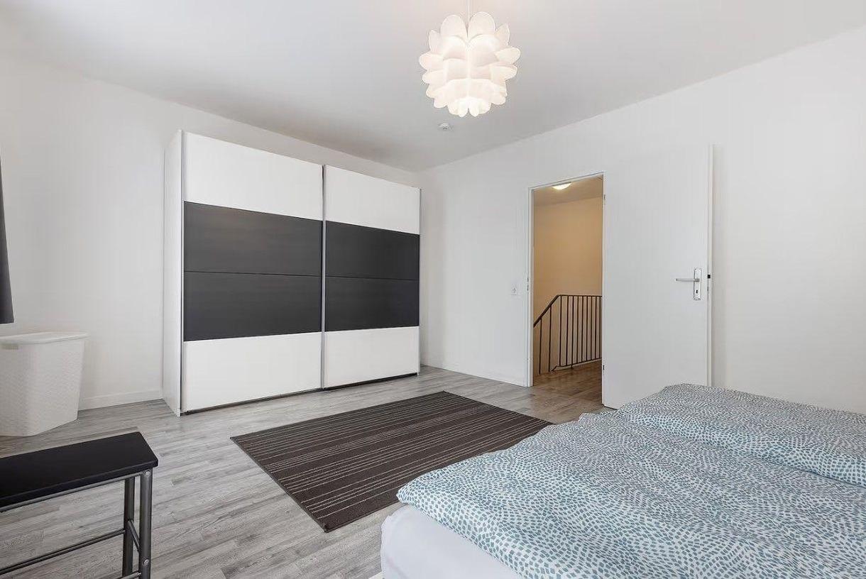 Doppelbett (180x200) mit Kissen, Bettdecken, 2 Nachttische mit Lampe, Kleiderschrank, Aussenrollo, Fliegengitter.