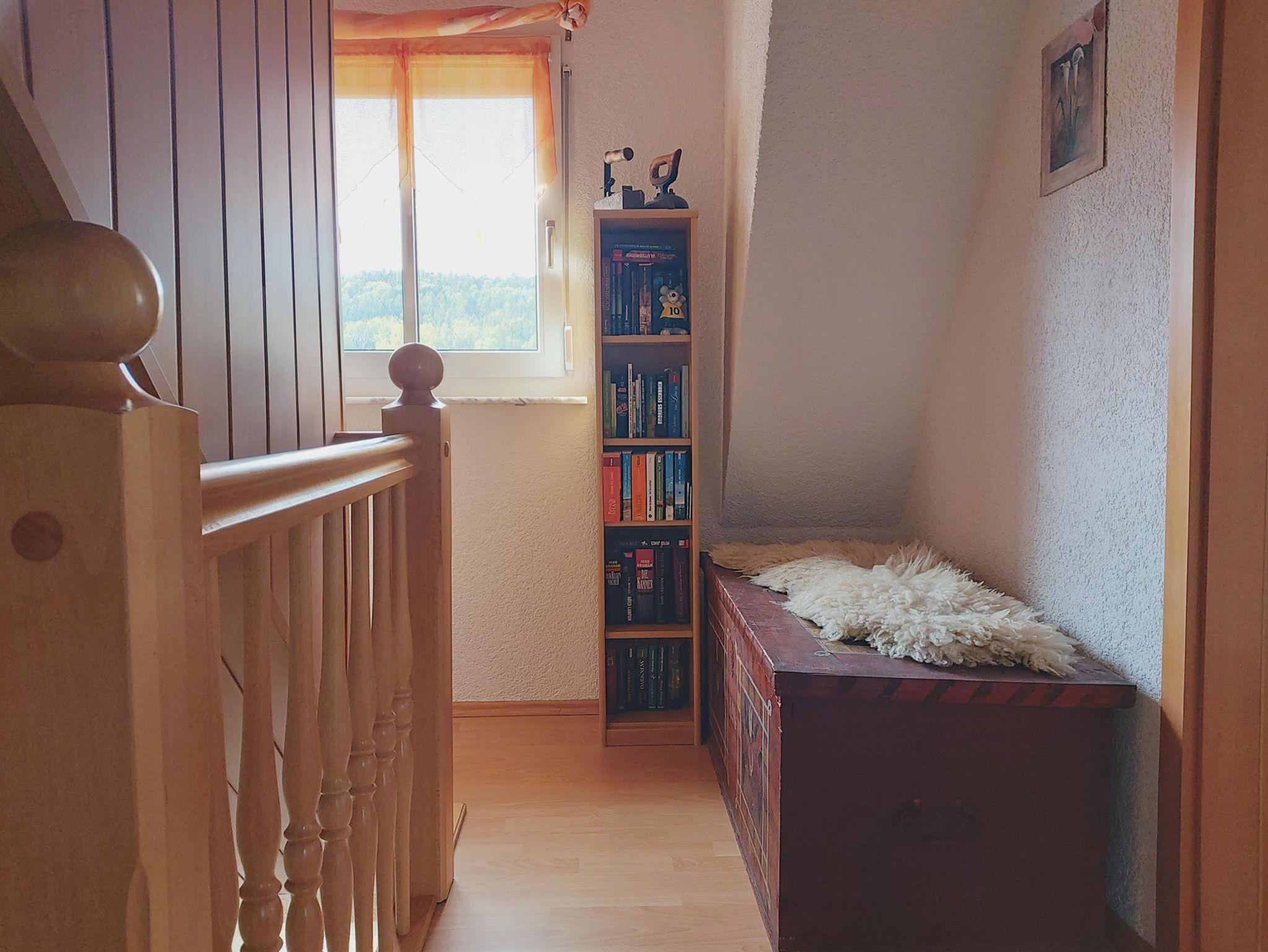 Ebenfalls im Erdgeschoss befindet sich das Badezimmer mit Badewanne, Dusche und Waschtisch und WC. Die zwei Schlafräume befinden sich im Obergeschoss. Ein Schlafraum ist mit einem Doppelbett und einem Kleiderschrank ausgestattet, das zweite Schlafzimmer mit zwei Einzelbetten und ebenfalls einem Kleiderschank. Beide Schlafräume sind mit einem TV-Gerät ausgestattet. Im Obergeschoss befindet sich auch die Gästetoilette mit WC und Waschtisch. Ab einer Gästeanzahl von mind. 5 Personen wird ein zusätzlicher Schlafraum im 2. Obergeschoss zur Verfügung gestellt, dieses Zimmer ist mit einem Doppelbett ausgestattet sowie 2 Schränken (Flachstrecke).