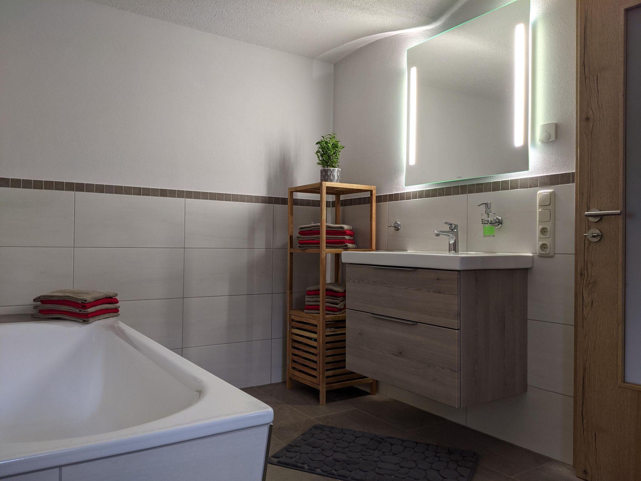 Sie erwartet eine 65 qm Ferienwohnung mit 2 getrennten Schlafzimmern für je zwei Personen, einem großen Wohn-/Essbereich mit angrenzender Küche sowie einem Bad mit Regendusche und Badewanne. Genügend Platz für ein Babyreisebett ist in beiden Schlafzimmern vorhanden. Des weiteren ist eine Aufbettung für ein Kind auf der Schlafcouch im Wohnzimmer möglich.