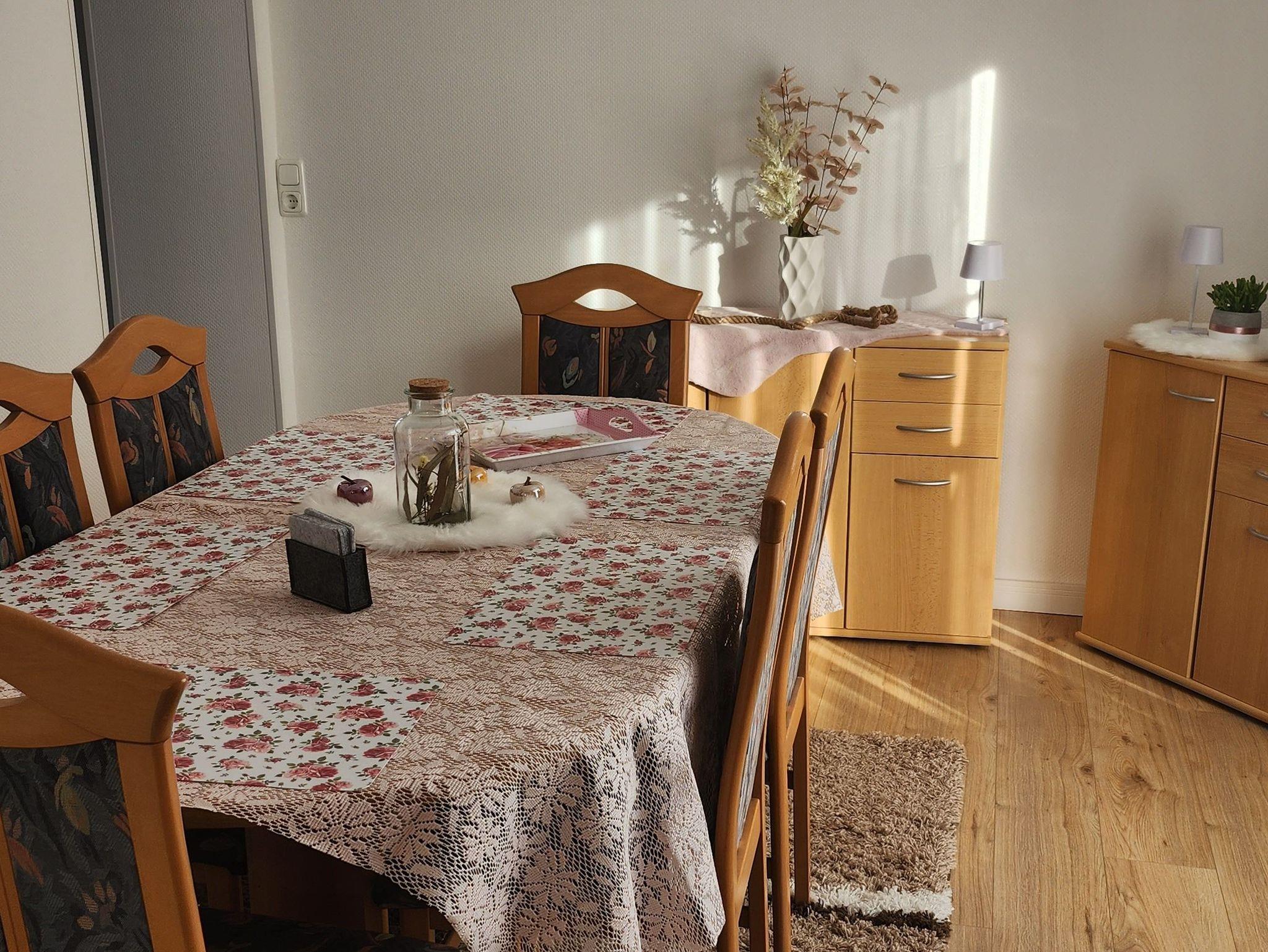 Die Wohnung hat Ca. 65 qm² und liegt im Erdgeschoss unseres Zweifamilienhauses in Harlingerode. Das Haus befindet sich in einem verkehrsberuhigten Wohngebiet (Zone 30). Das Zentrum von Bad Harzburg ist ca. 4 km entfernt. Die obere Etage wird privat genutzt.