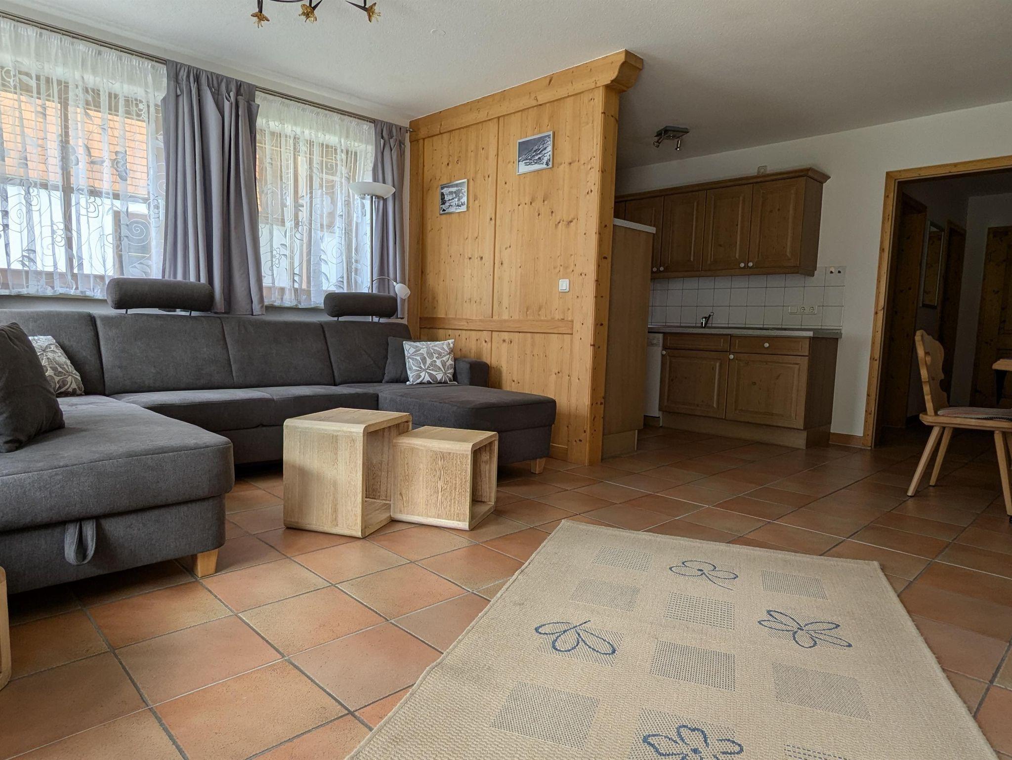Die Wohnung Wolkenstube im 1 OG mit 68 qm verfügt über 2 getrennte Schlafzimmer, 1 Elternschlafzimmer 1 Kinderschlafzimmer mit Stockbett, Dusche/WC, Garderobe, Küche mit gemütlicher Essecke sowie einem angrenzenden Wohnraum mit Schlafcouch.