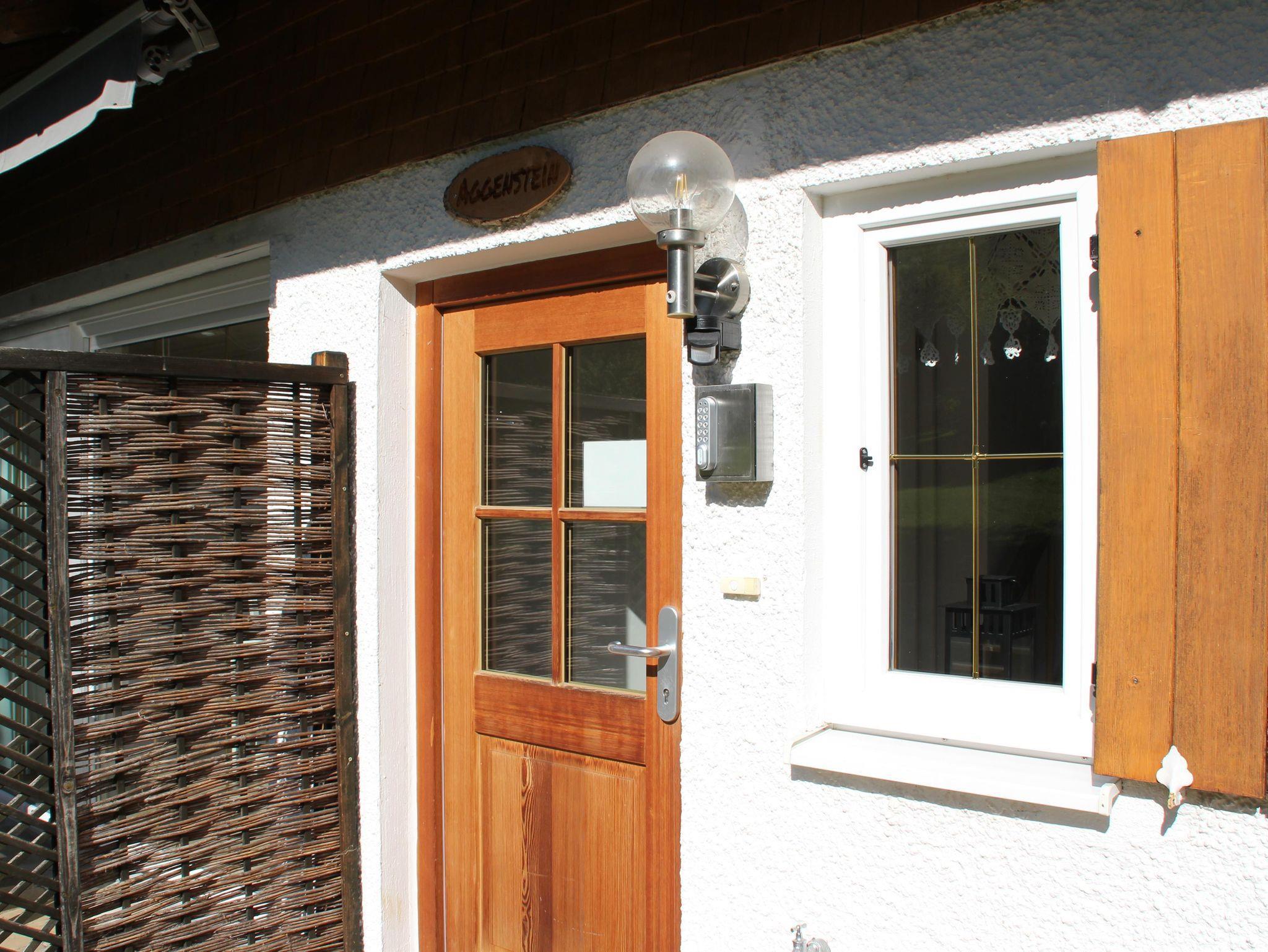 Die Ferienwohnung „Aggenstein“ im Obergeschoss bietet auf 66 m² Platz für Paare oder kleine Familien bis 4 Personen. Sie verfügt über ein Schlafzimmer mit Doppelbett, Bad mit Wanne/Dusche, separate Küche und einen Wohn-/Essbereich mit Schlafsofa. Von hier genießen Sie einen traumhaften Blick auf die Berge. Babybett und Hochstuhl stellen wir bei Bedarf gerne kostenlos bereit. Der Eingang befindet sich auf der Rückseite des Hauses und ist über die PKW-Stellplätze erreichbar.