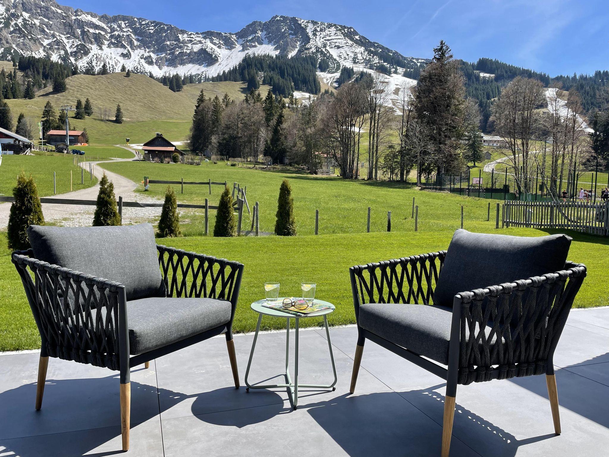 traumhaftes Bergpanorama auf der Süd-Terrasse, Doppelgarage Lademögl. E-Autos, Infos: https://alpenchalet-iseler.de/