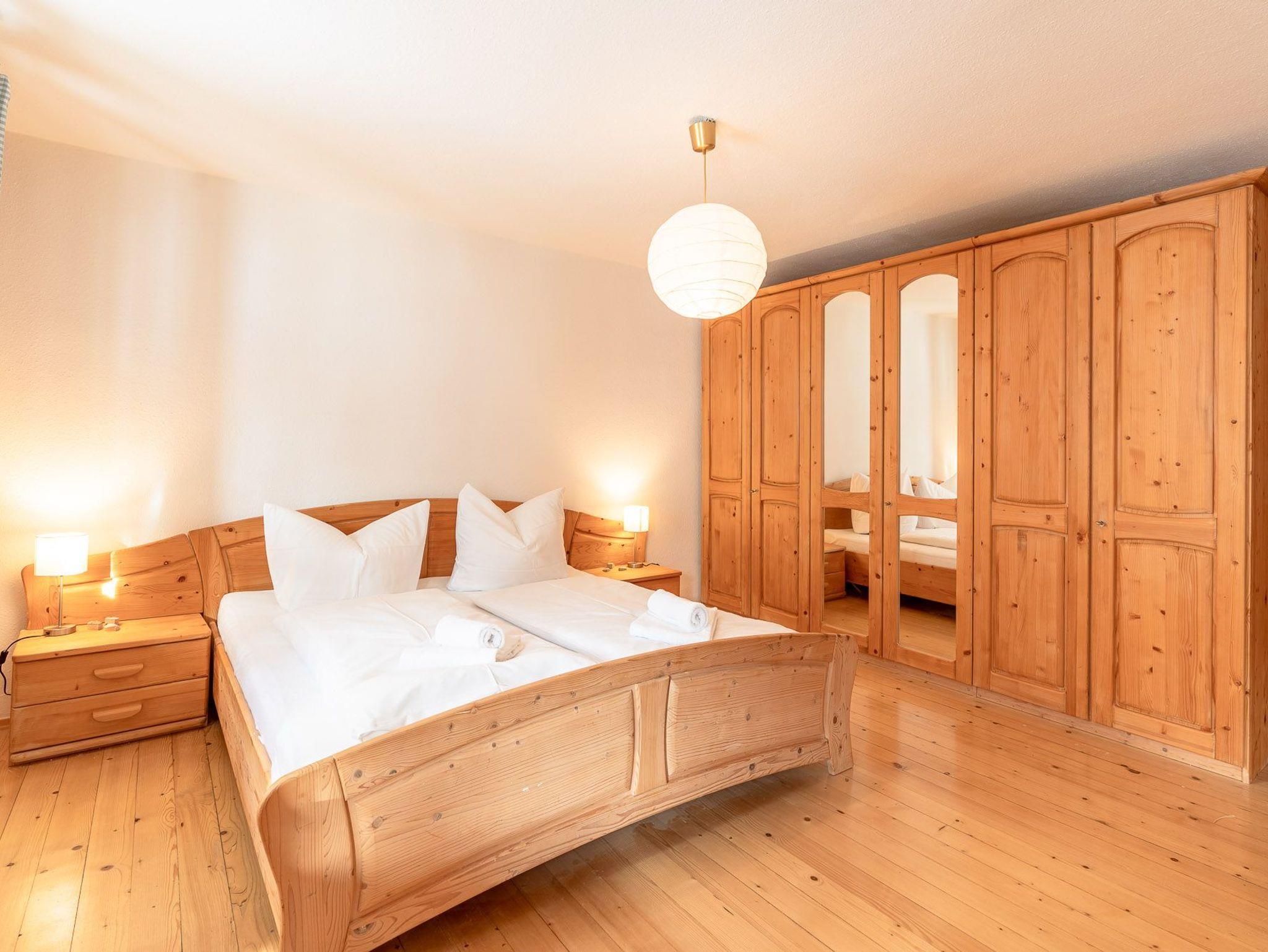 Das 1. Schlafzimmer verfügt über ein Doppelbett und ist im gemütlichen Landhausstil eingerichtet. Der große Kleiderschrank bietet außerdem viel Platz für Ihre Urlaubsgarderobe.