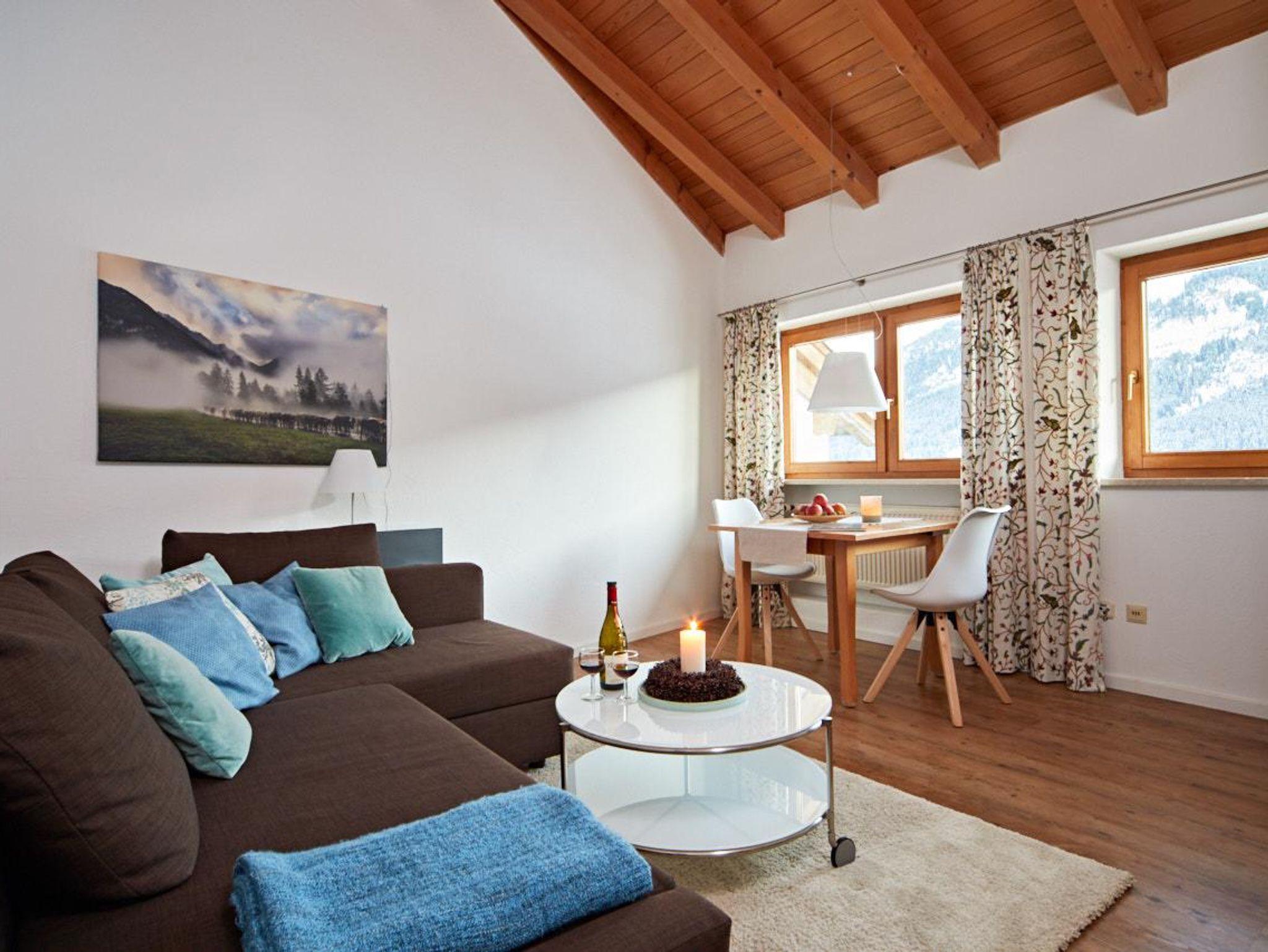 Sehr helle gemütliche Dachgeschosswohnung mit offenem Dachstuhl. Von Wohn- und Schlafraum herrlicher Ausblick auf Berge und Ostrachtal. Kleiner