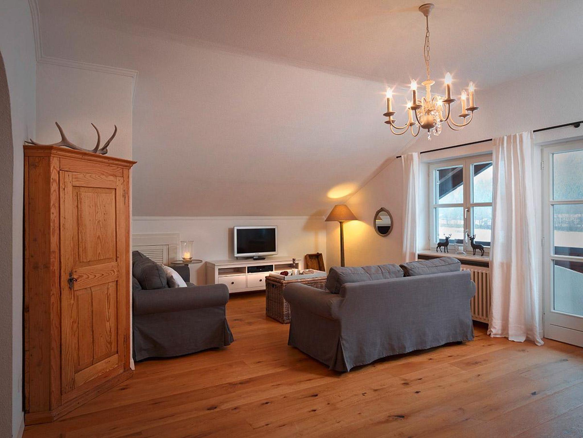 Moderne 2-Zimmer-Wohnung ( 41qm + 10 qm Balkon ) für 1 - 2 Personen mit hochwertiger Ausstattung: sep. Schlafzimmer (1,6x2m Bett), kleines modernes Bad, gemütliches Wohn- / Esszimmer mit Küche, TV und WLAN. Balkon mit freiem Blick auf Wiesen und Berge. Gerne können Begleitpersonen ein Gästezimmer dazubuchen.